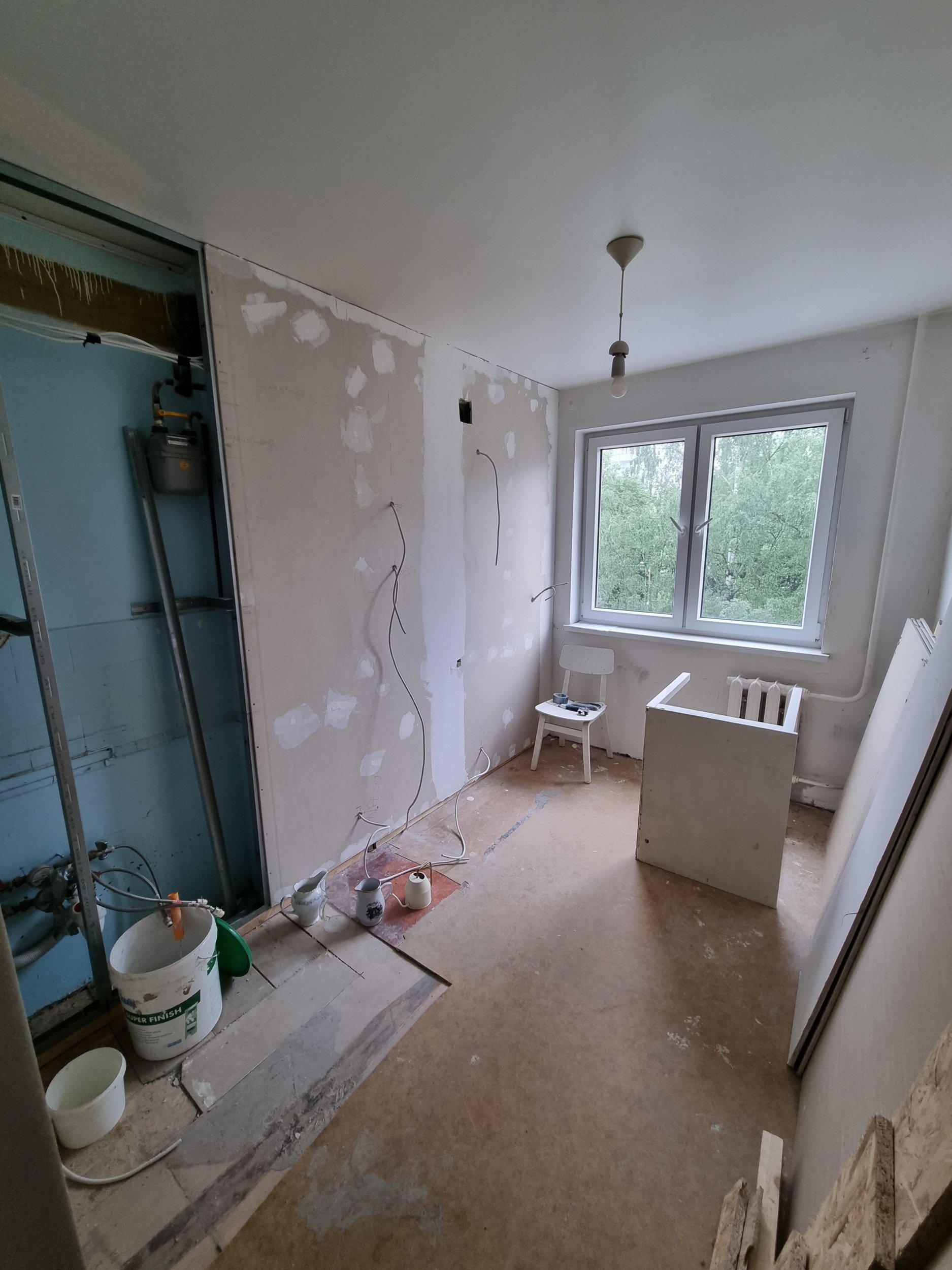 Köögis pooleldi ehitatud kipssein koos karkassiga