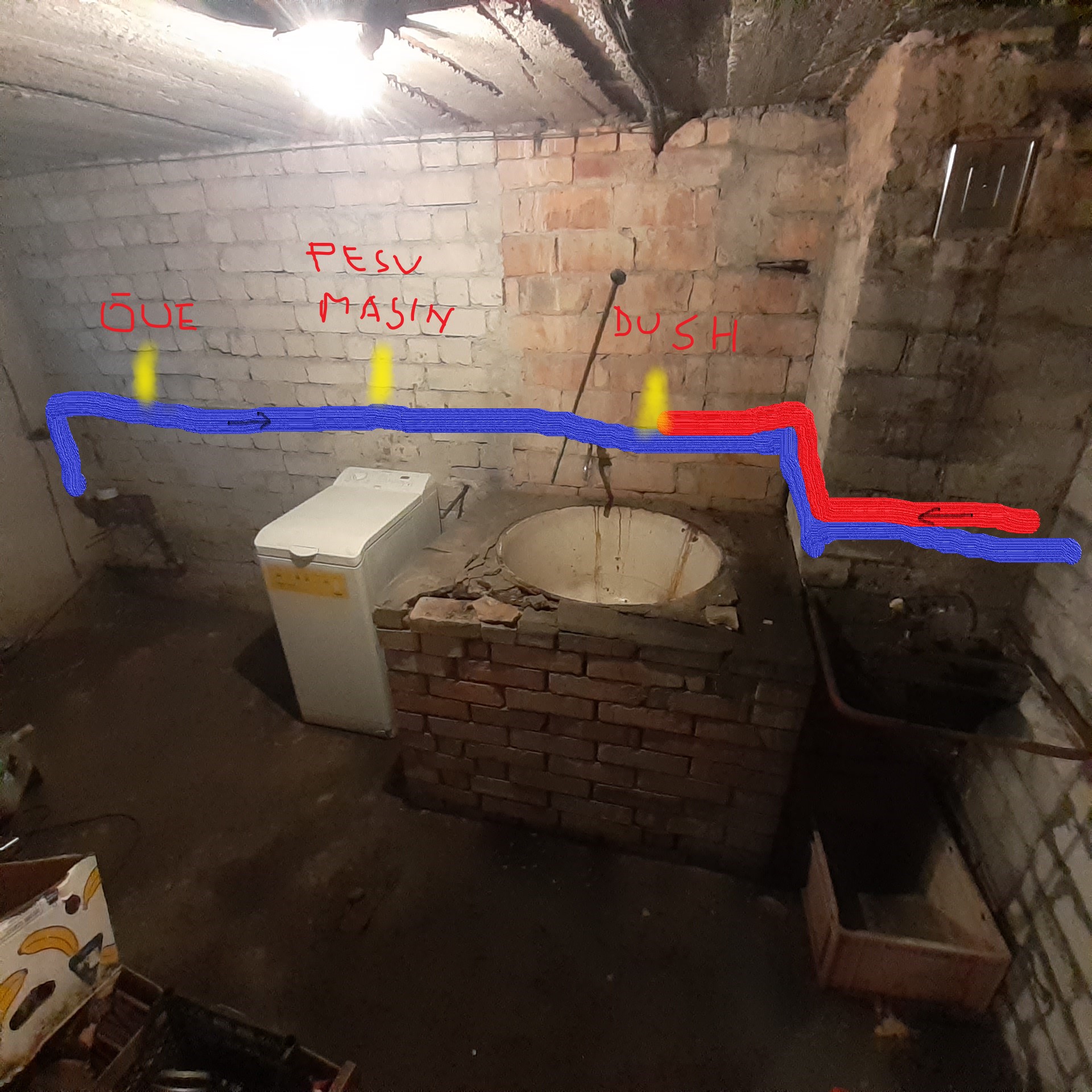 1)keldrikorruse pesuruumis asuvast veemõõtjasta alates tuleb vedada uus külmavee toru boilerini (läbiviik seinast varasemast ajast olemas)