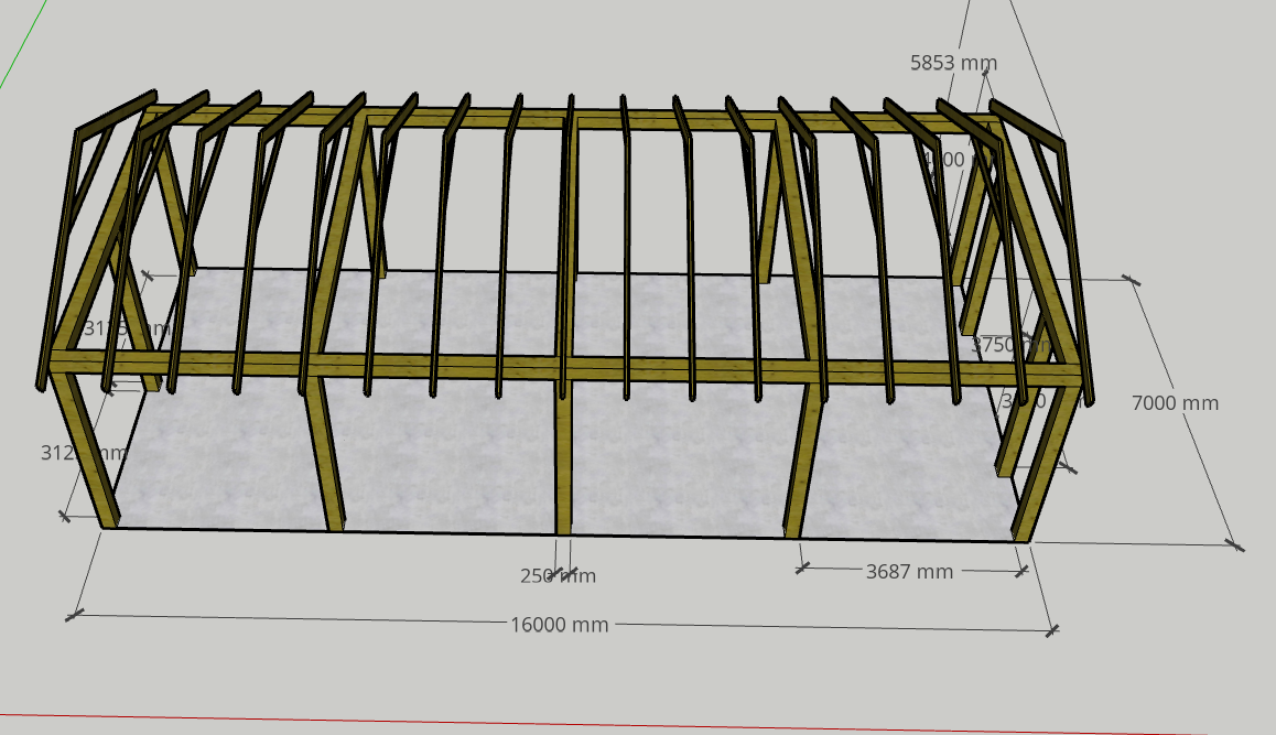 mõõdud 7x16m harja kõrgus ca 6m, konstruktsioon postvundamendil, põrand 100mm eps ja 150mm armix kiud betoon , põhikarkass 250x250 puittaladel, hoone katus ja seinad 100mm pur sandwich paneelidest, hoone otsas tõstuks väiksema käiguuksega, aknad puuduvad hoonel.