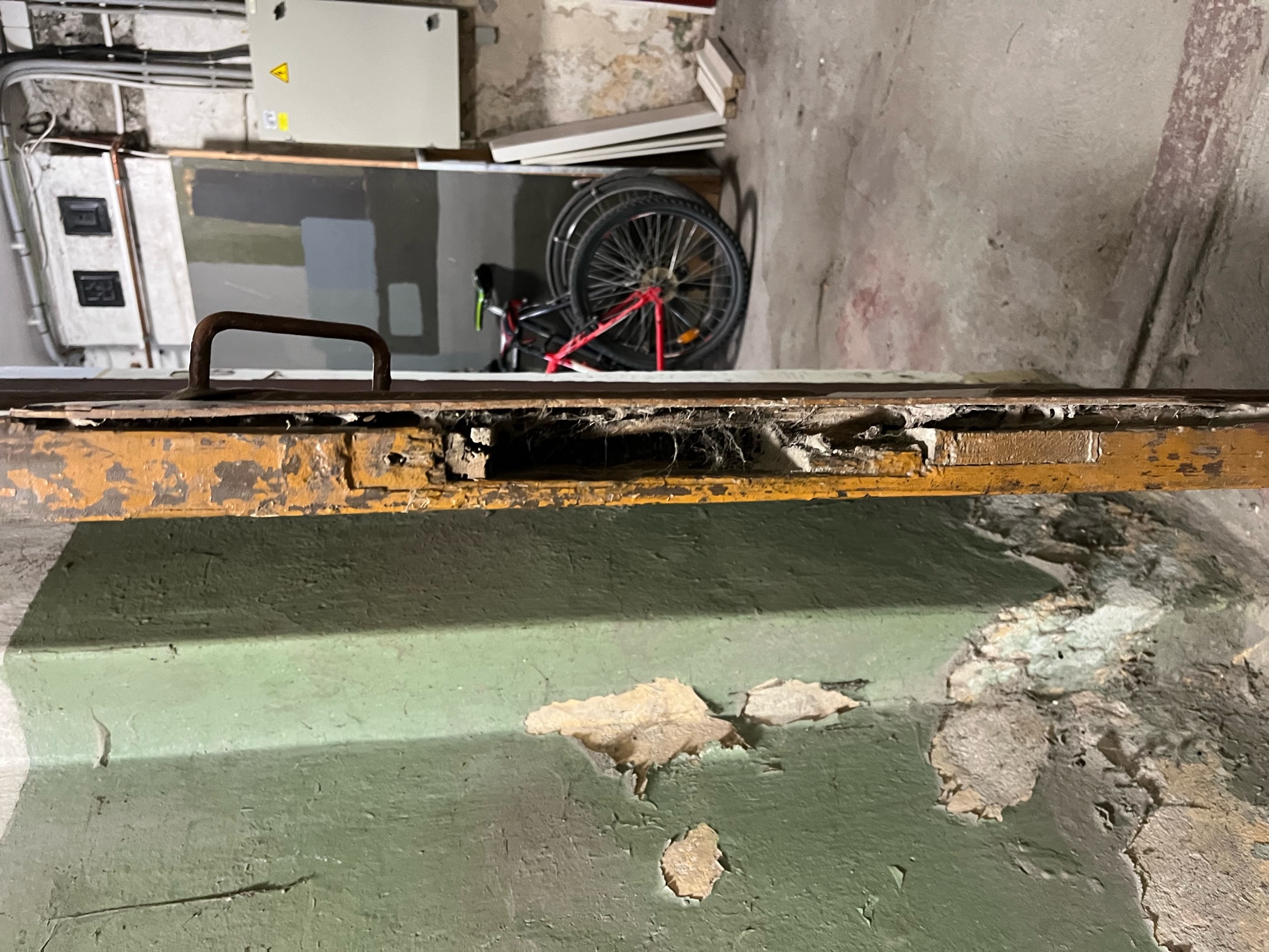 Proovime veidi taastada ukse katkist osa ja lisame luku koos võtmetega. Tundub nagu tegemist oleks ühistule kuuluva keldriuksega seega leiame sinna kindlasti viisaka lahenduse .