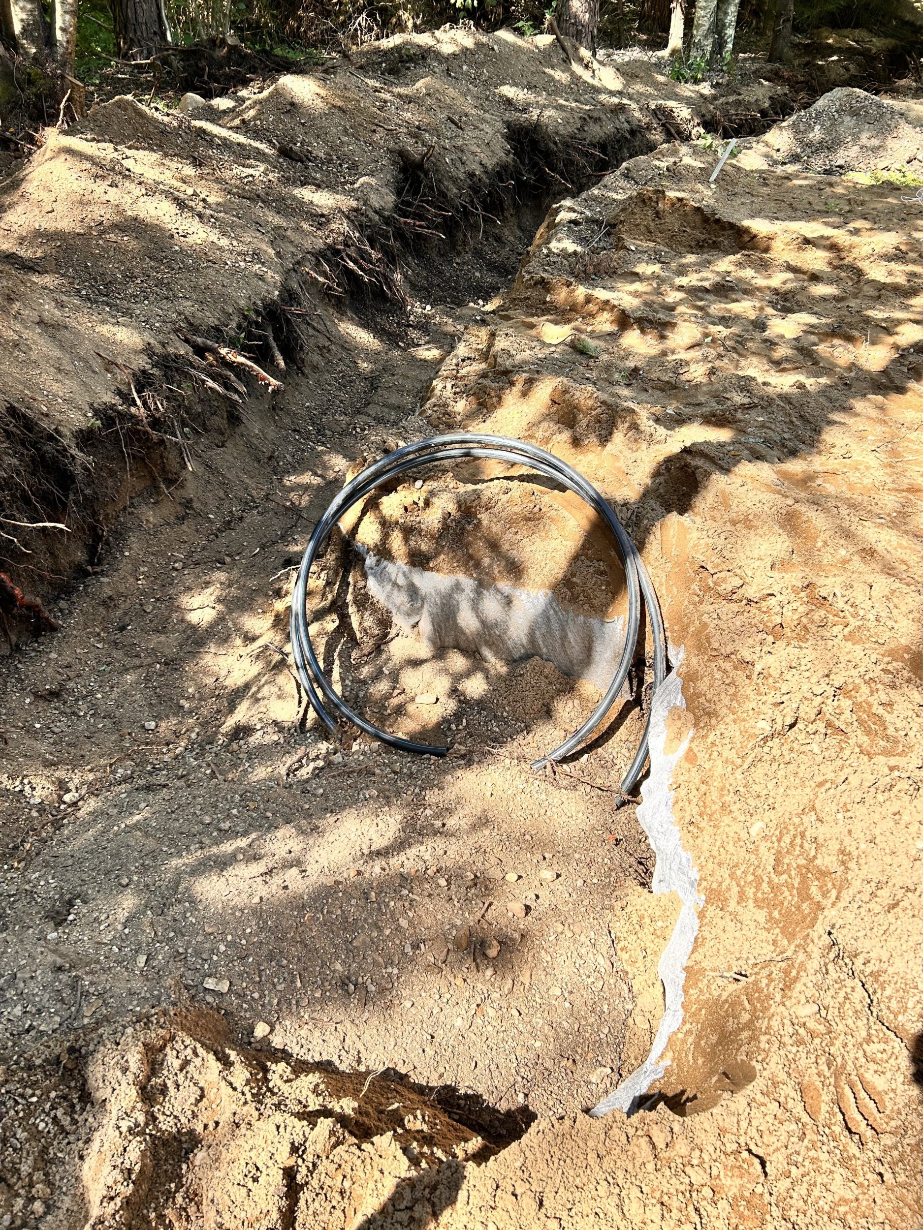 Vajalik kaevetöö liitumiskilbist pumbamajani pikkuses 60m. Pumbamajast majani 50m on kaevetöö tehtud – selles pikkuses on vaja maakaabel olemasolevasse kraavi paigaldada. Ehk kokku 110m kaablit, millest 50m läheks olemasolevasse kraavi kuhu veetrass paigaldatud.