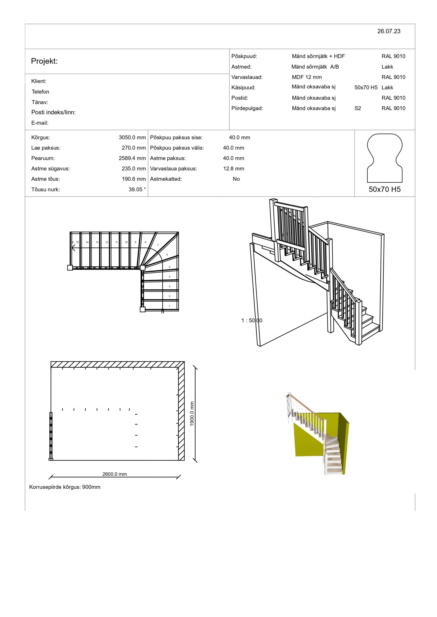 Joonise põhjal hinnapakkumine trepile ja piiretele. Liimpuit oksavaba mänd. Astmed lakitud või õlitatud3x.