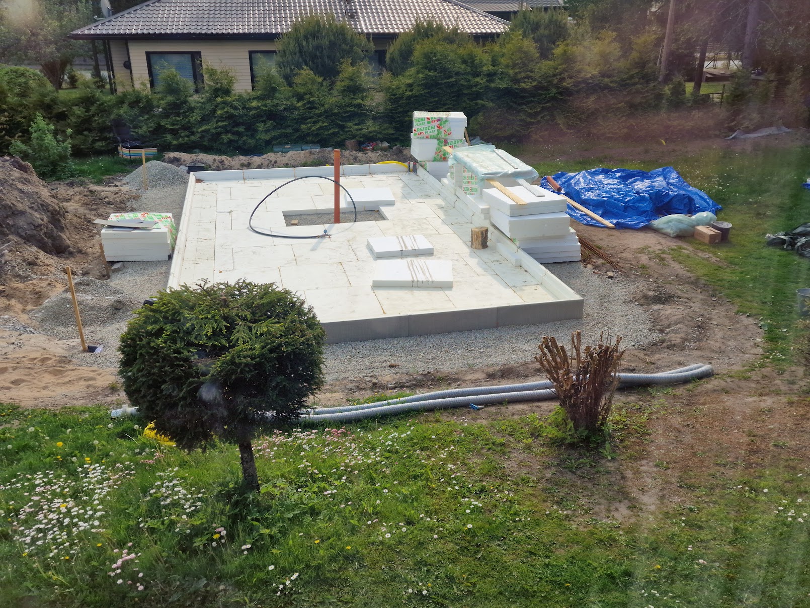 Vundamendiga on juba alustatud st alus, drenaaž on tehtud, kommunikatsioonid on sisse toodud ja esimene epsi kiht on paigaldatud, ülejäänud eps on olemas. Lisaks paigaldada vesipõrandakütte torud, armatuurteras osaliselt olemas .