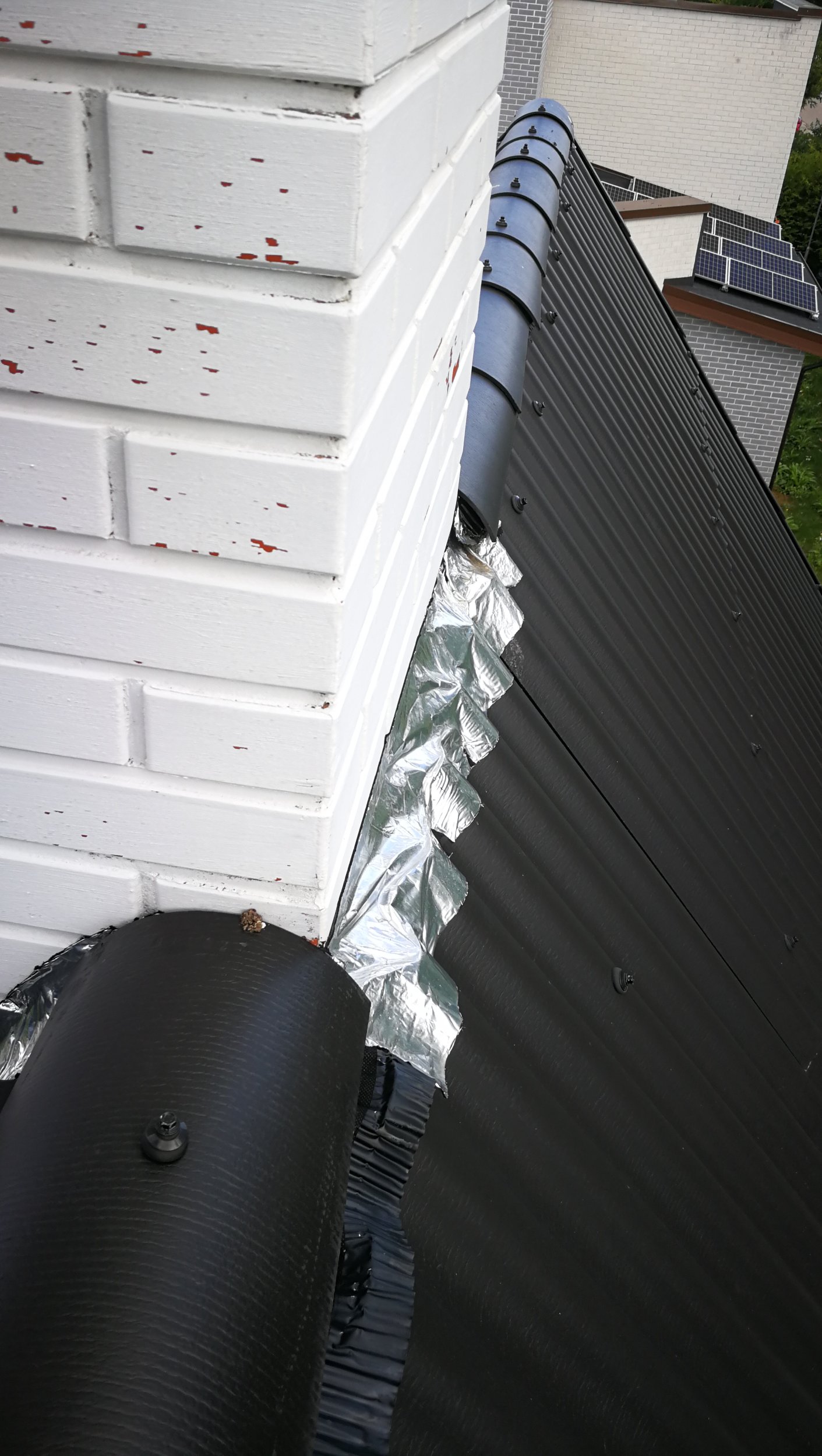 Korstnapleki paigaldus eramajal. Soov saada musta värvi plekk korstna ja eterniitkatuse liitekohale. Korstna mõõdud: laius 77cm, sügavus 55cm.