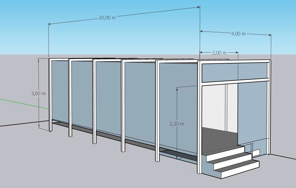 Ukseava mõõtmed peaksid olema 2m (laius) x 2.2m (kõrgus). Uks võib olla ülevalt siinidel, ümbritsetud raamiga ja sandwich paneeliga sees.