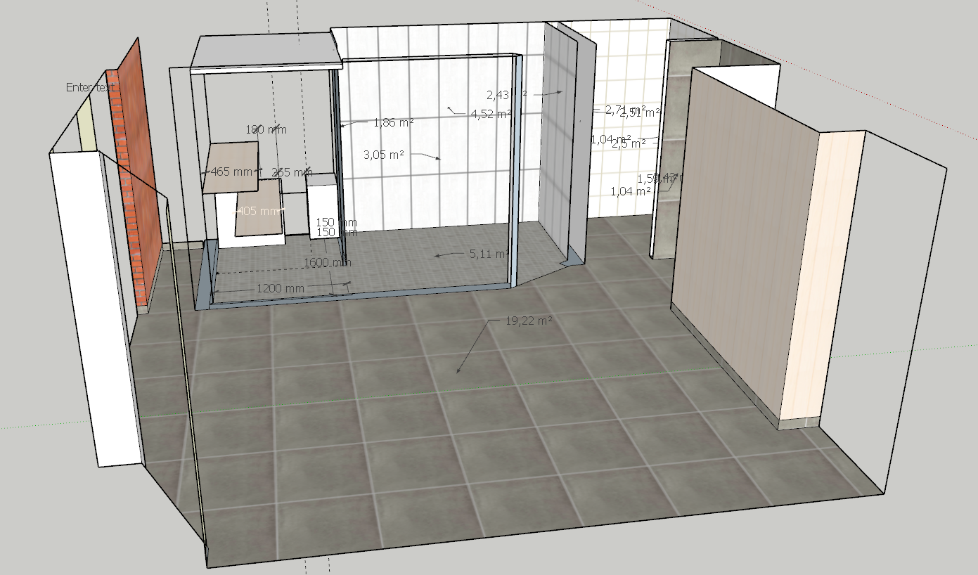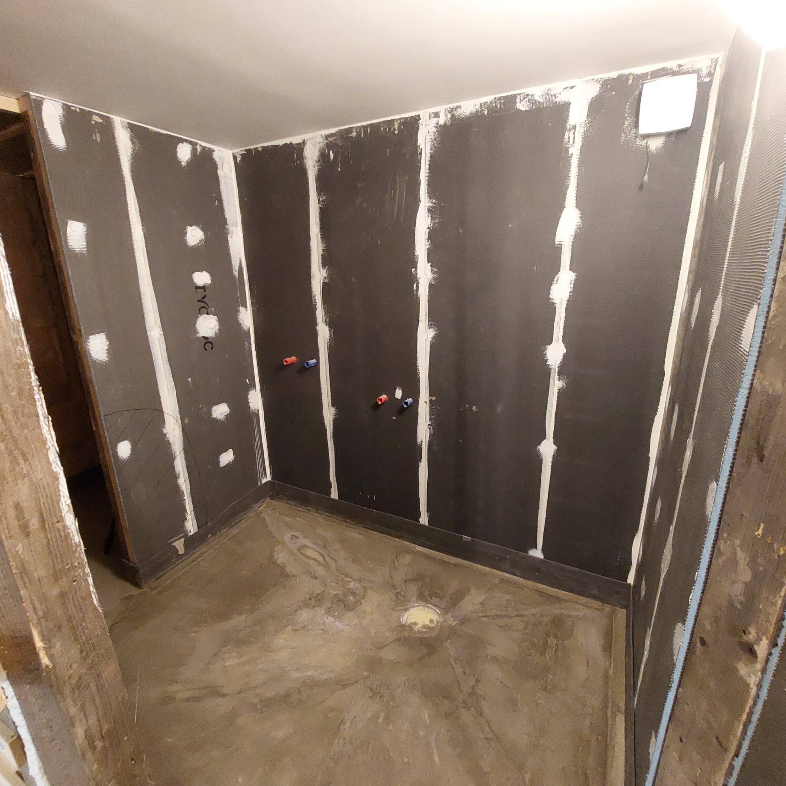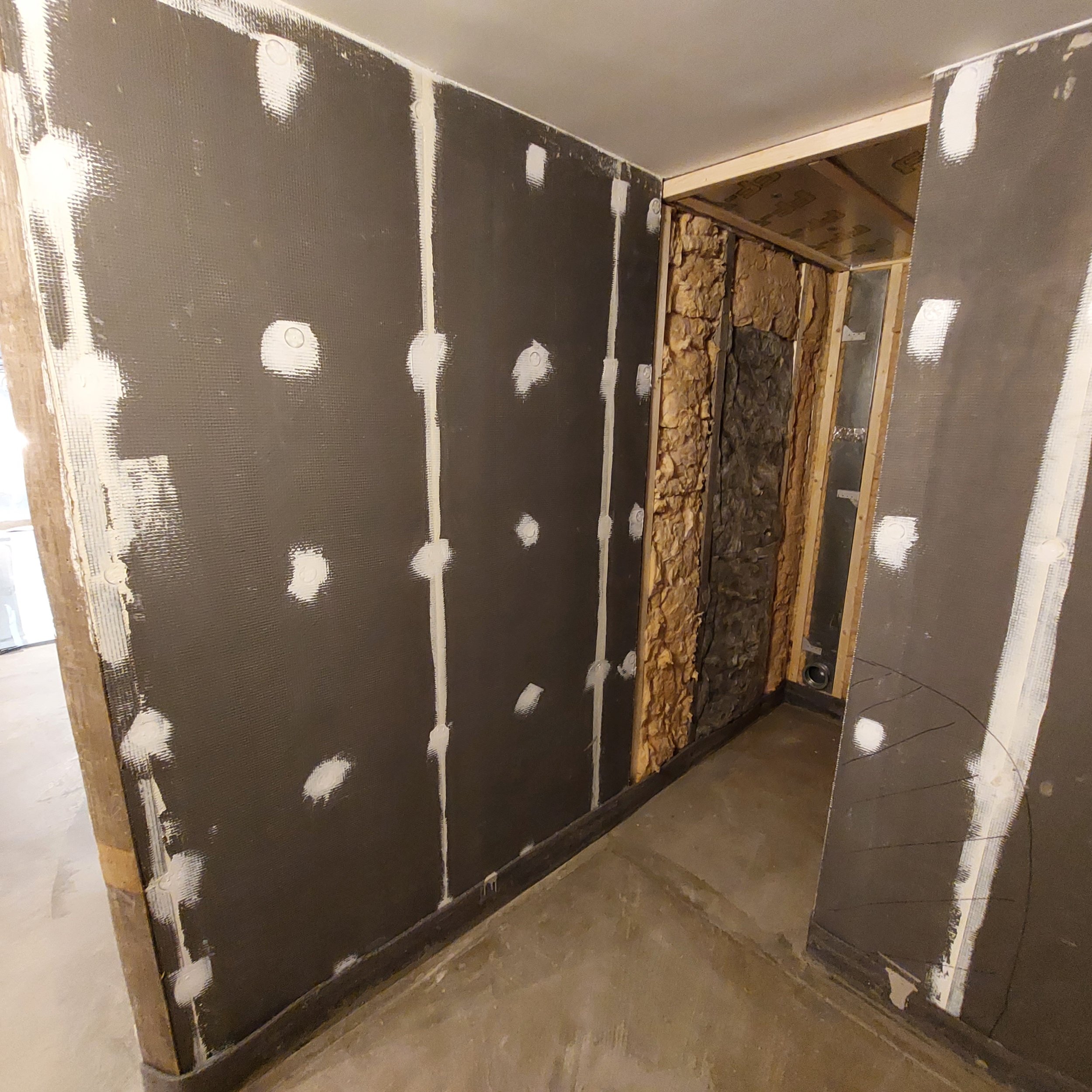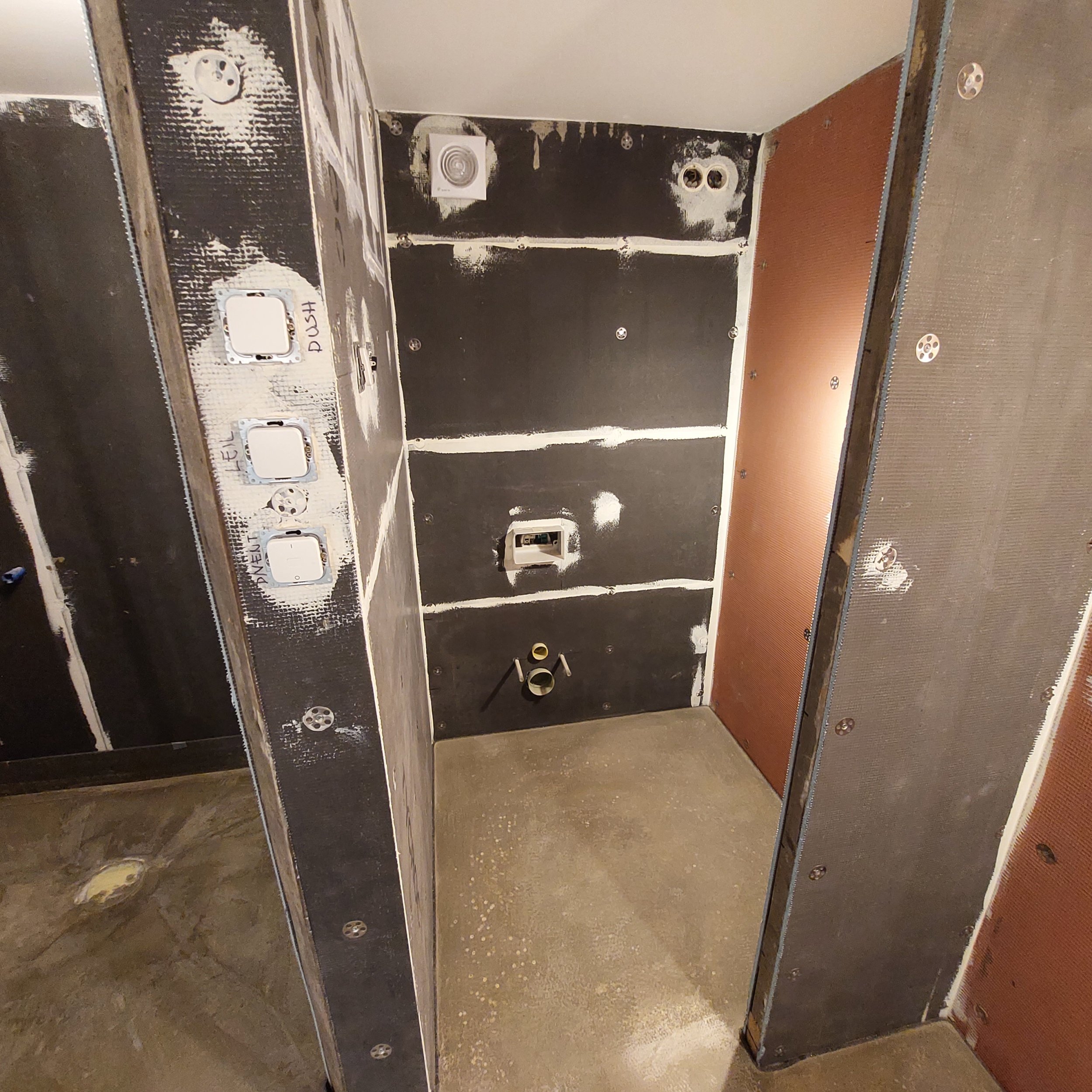 Leiliruumi ja duširuumi plaatimine 5x5cm võrgul plaatidega, leiliruumis ka 10cm kõrgune ääris samadest plaatidest. Nendes ruumides on kalded olemas. Duširuumi Tycroc plaatidest seinte plaatimine 30x60cm plaatidega. WC seinte plaatimine 20x25cm plaatidega. Suure ruumi põranda, WC põranda ja pildil märkega A seinte plaatimine 60x60cm plaatidega. Suure ruumi äärtele vaja 60x60cm plaatidest lõigata ja paigaldada 8cm kõrgused äärised. Kokku plaatida umbes 45m2.