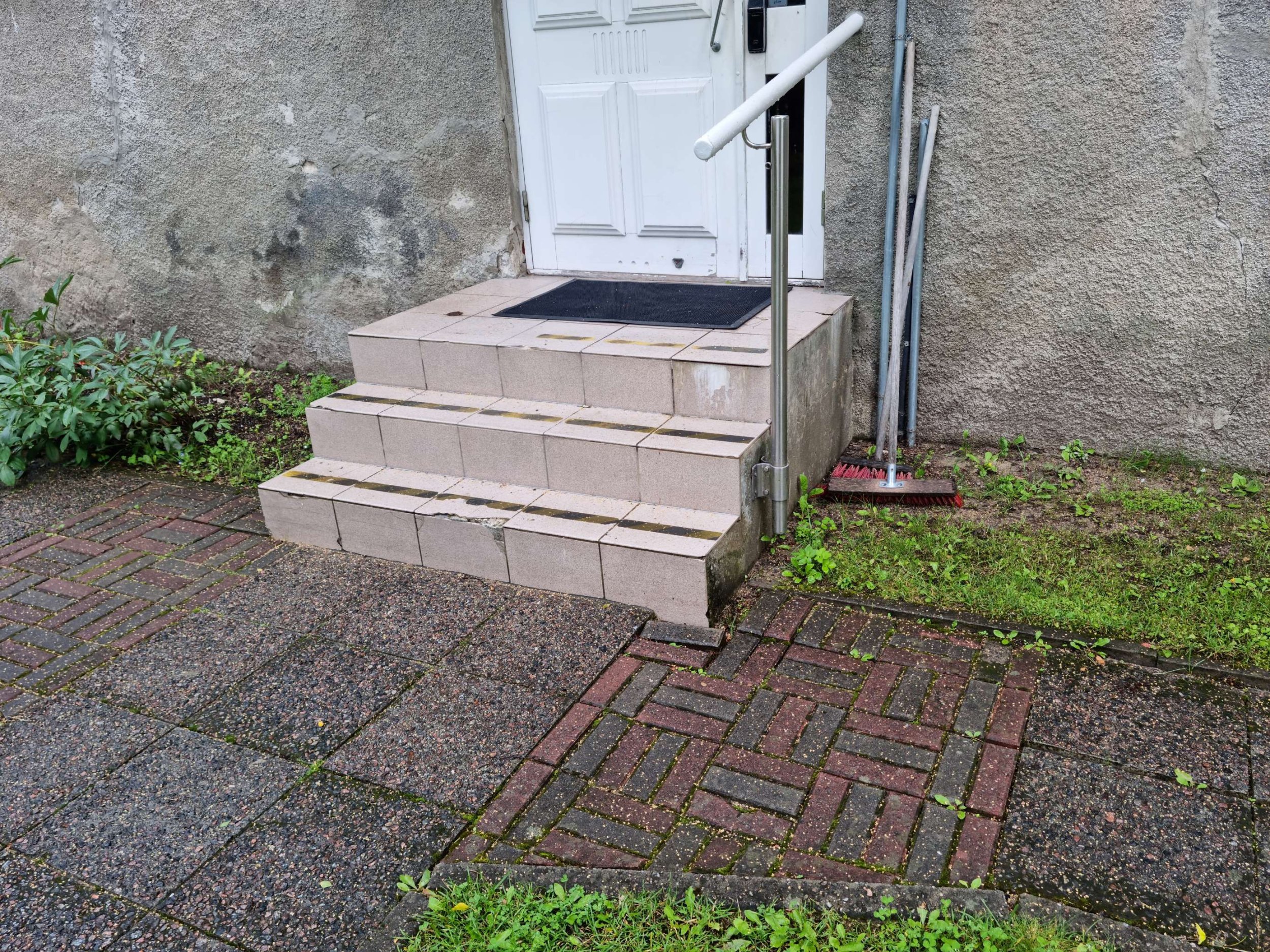 Plaatide mõõt: 30 x 30 cm (sama mõõtu nagu olemasolevad), vt. lisatud pilt. Plaatida identselt olemasolevaga, trepi külgesid ei plaadi.