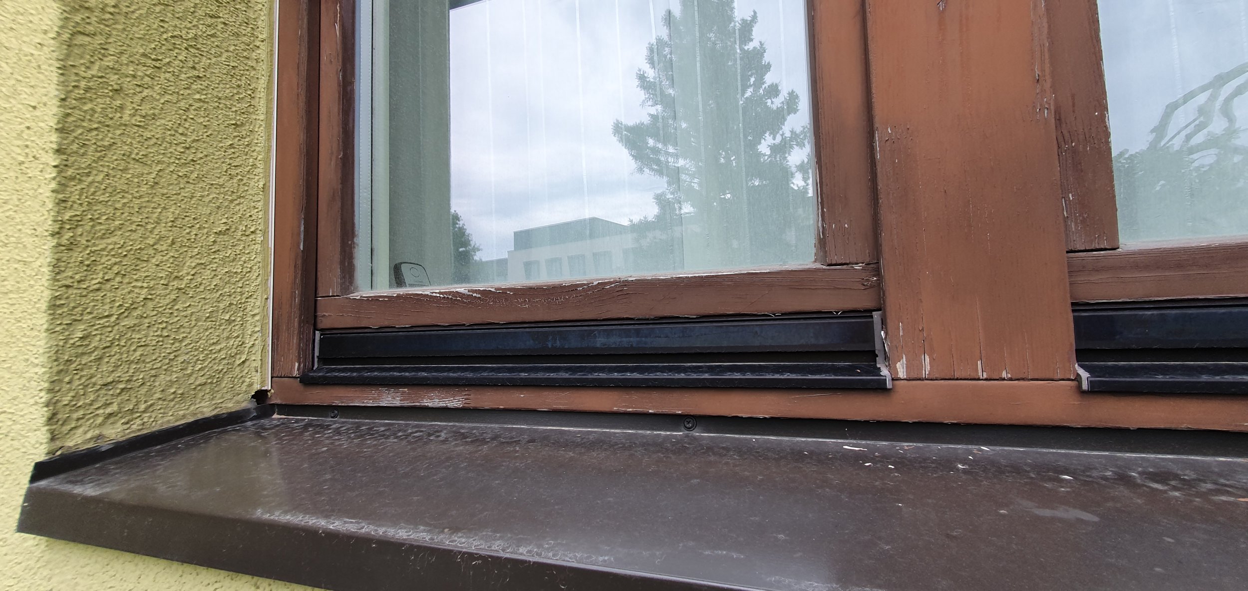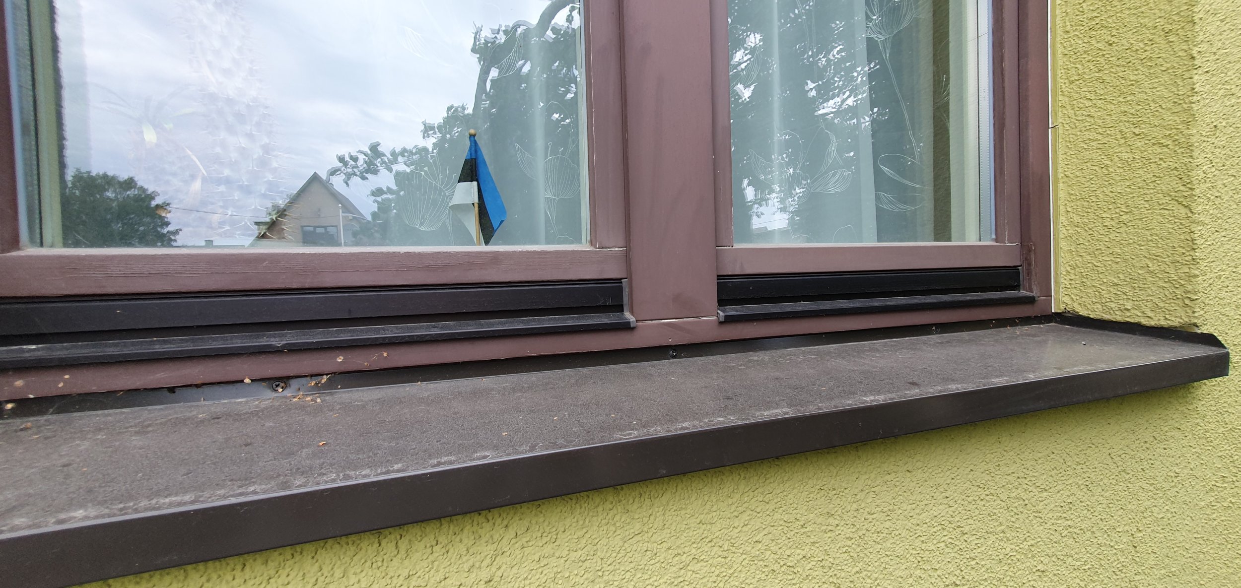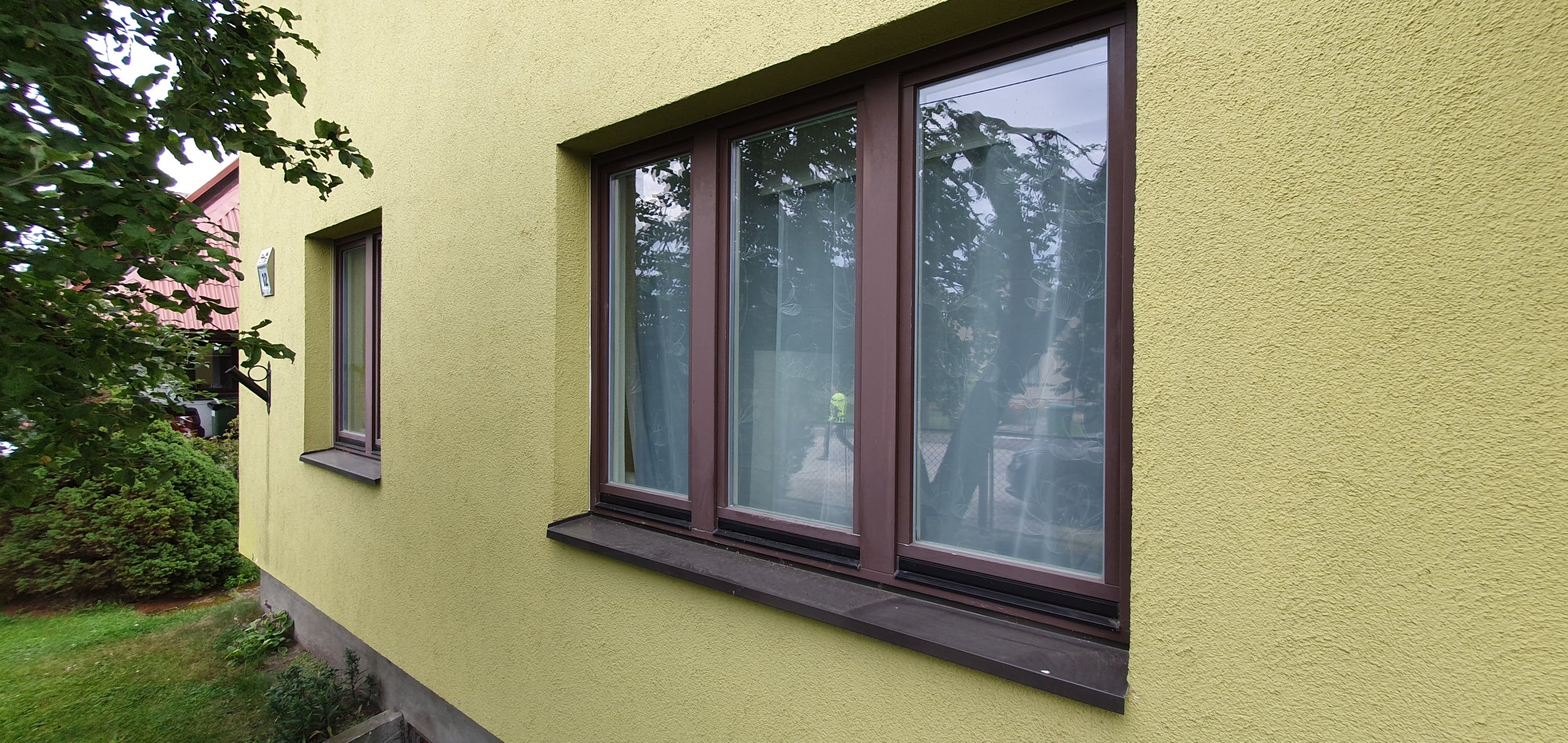 9 kahepoolset ja 3 kolmepooset akent. Värv pruun.