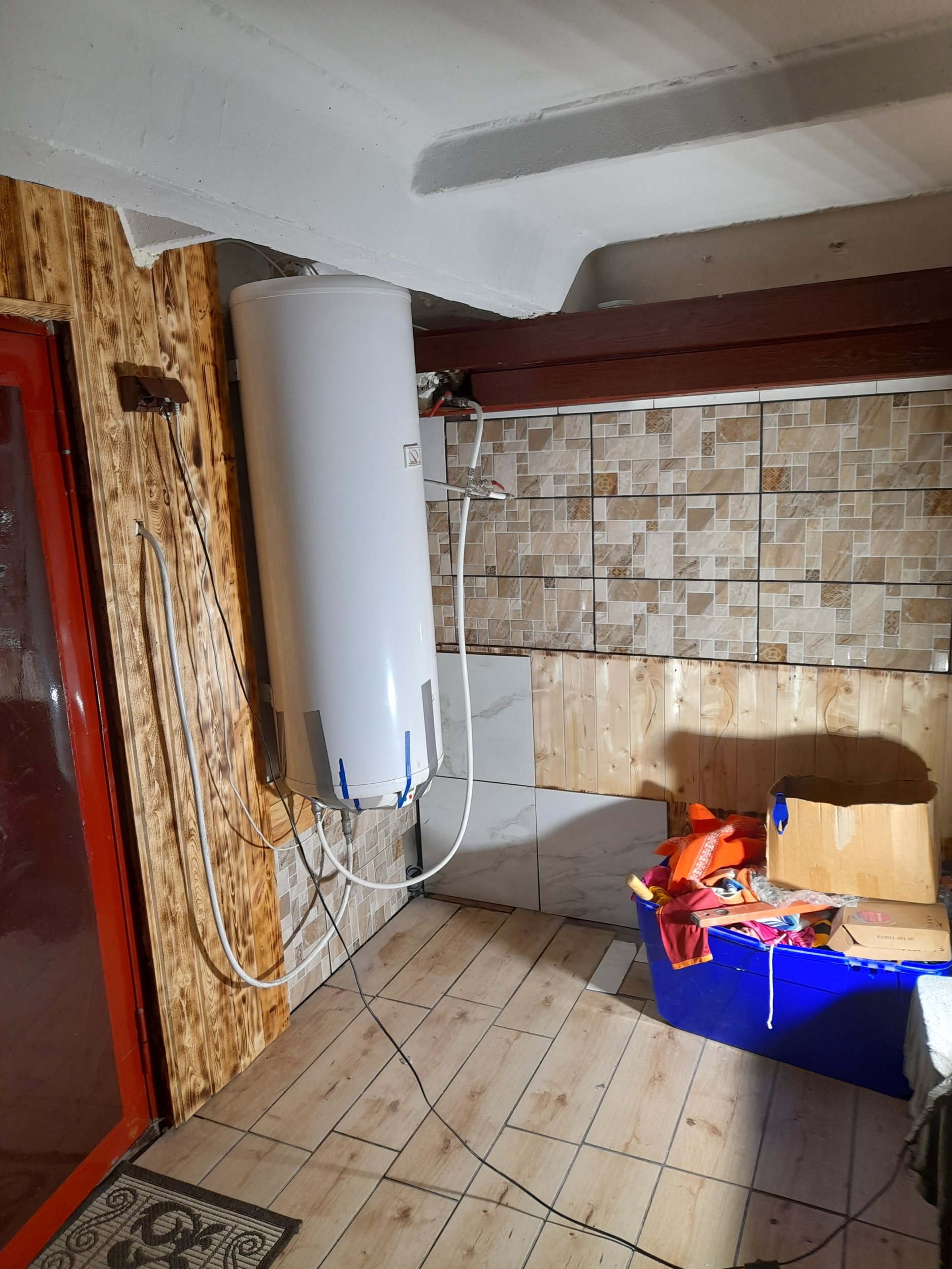 Keldris paiknev kahesüsteemse 140L boilerivahetus uue 100L vastu. Vaja oleks ka lisakraane otsaseina planeeritavale valamu segistile.