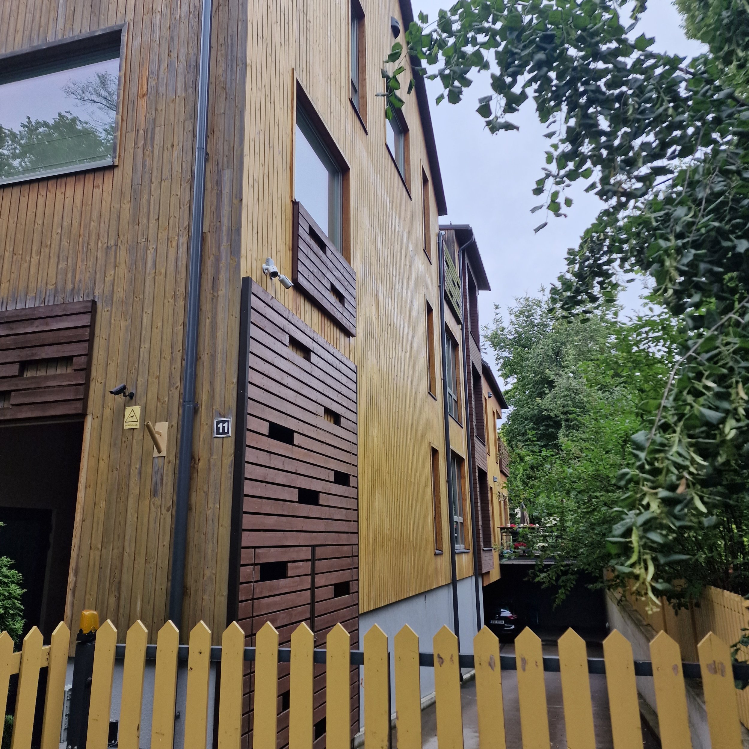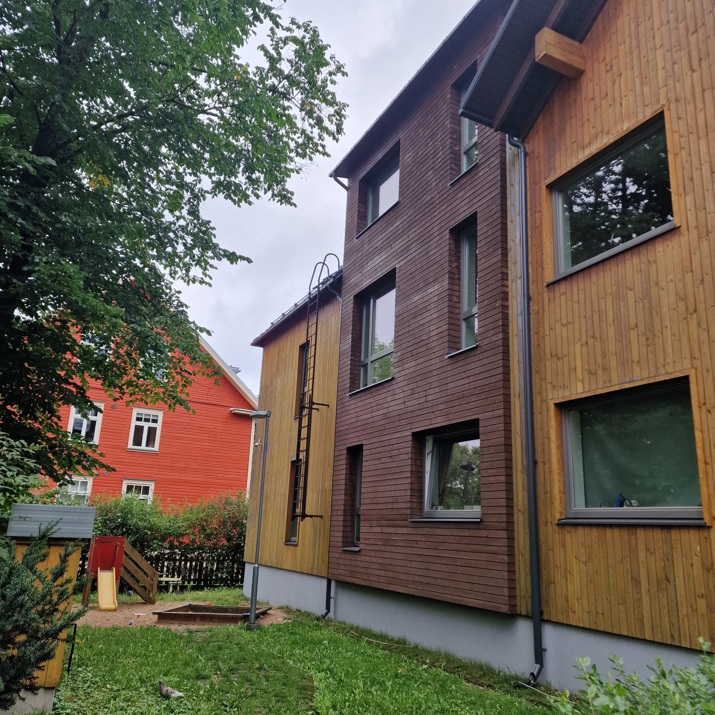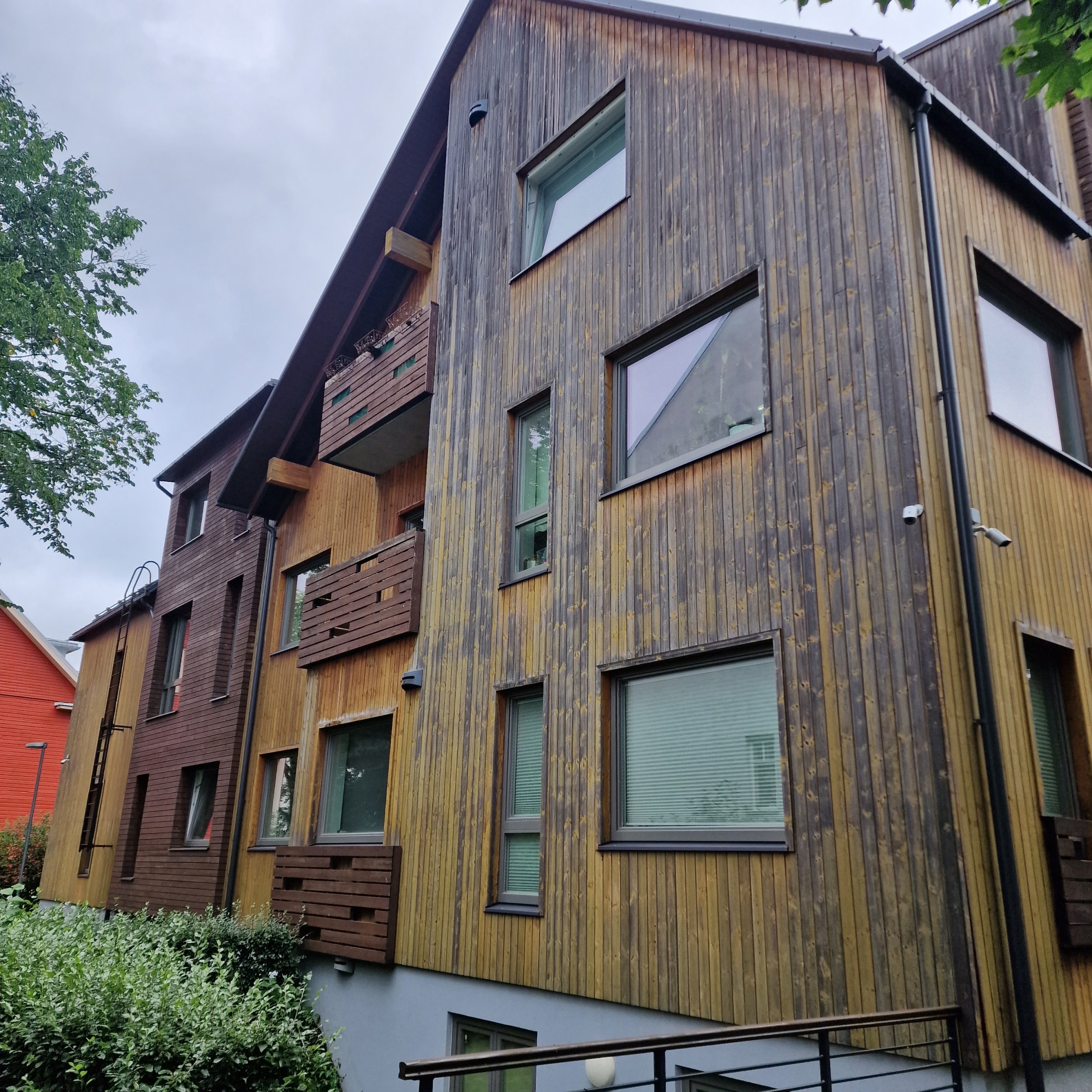 3 korrulise maja fassadi vanast värvust puhastamine ja ülevärvimine. Üldpind 910m2
