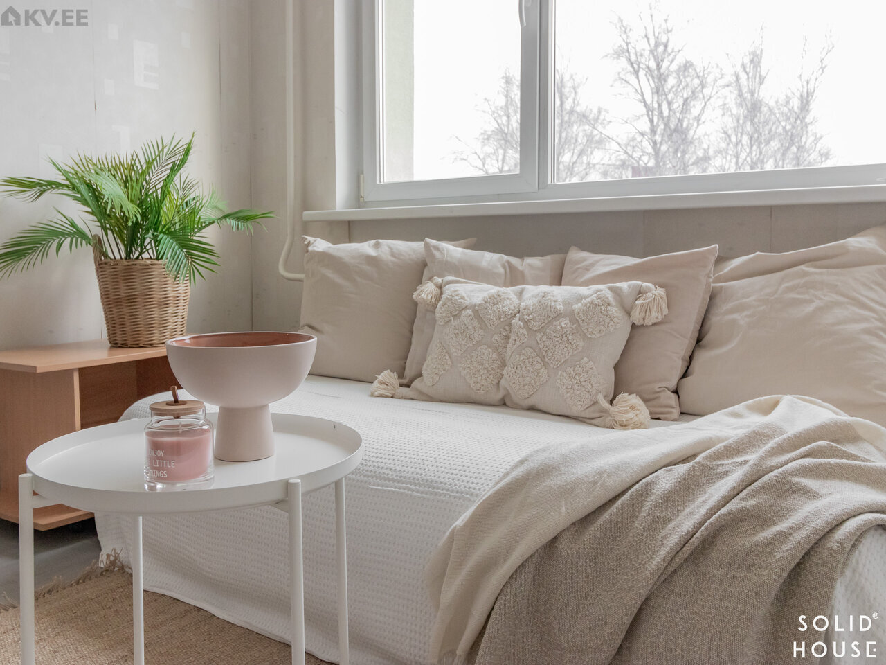 Elutoas panna seina kips, pahteldada ja lõpuks värvida valgeks seinad