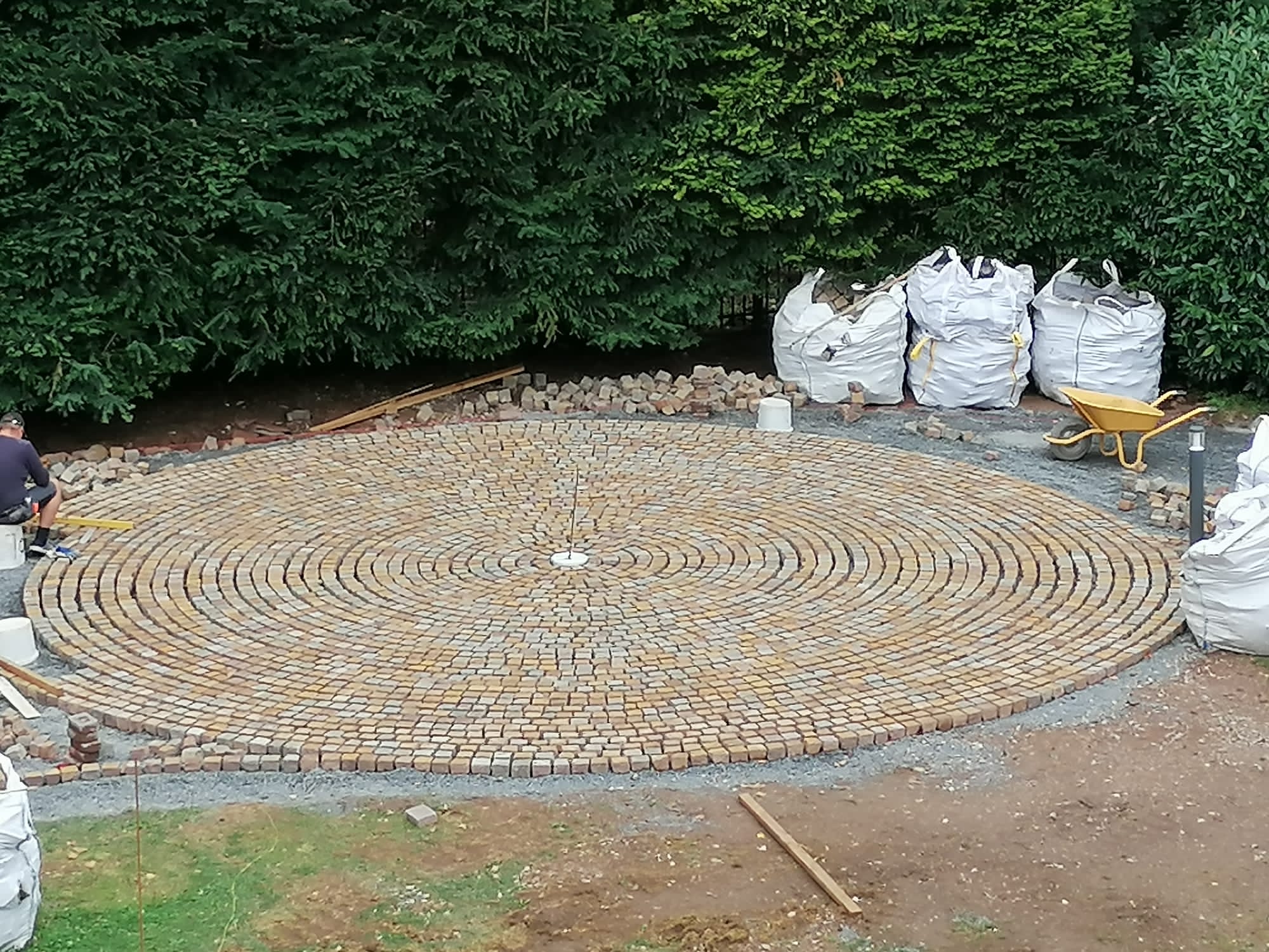 Looduslike tänavakivide paigaldus umbes 180m2,aluspind on valimis kuid kõrgused on vaja veel paika panna. Piltidelt on näha ,et tööd on juba alustatud ja teha on veel kuid mitte ringina. Kuna objekt on saksamaal siis kunstilist maitset peaks olema ja keele oskus pole oluline.Materjalid olemas ,tööriistad ja esmased tarbed nagu kindad ,laserid, pikk rihtlatt jne kõik olemas. Utiliseerida midagi pole vaja.