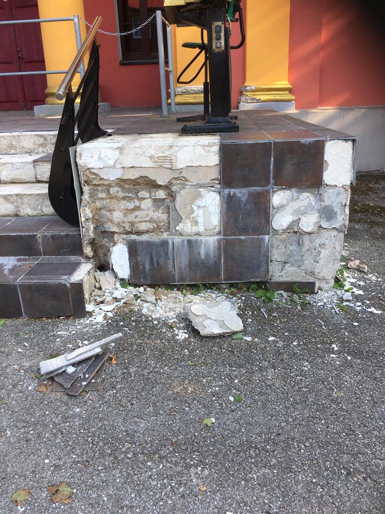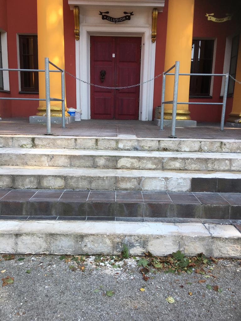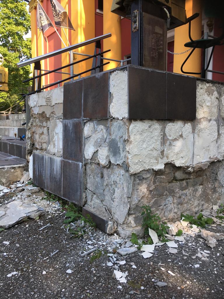 Hoone välistrepi astmete õige kaldega valamine ja plaatide tagasi panemine. Trepi seinapind 5 m2, astmete pind 12 m2. Aluspinna puhastamine segust ja tööpinna katmine ilmastiku eest on meie poolt tagatud.