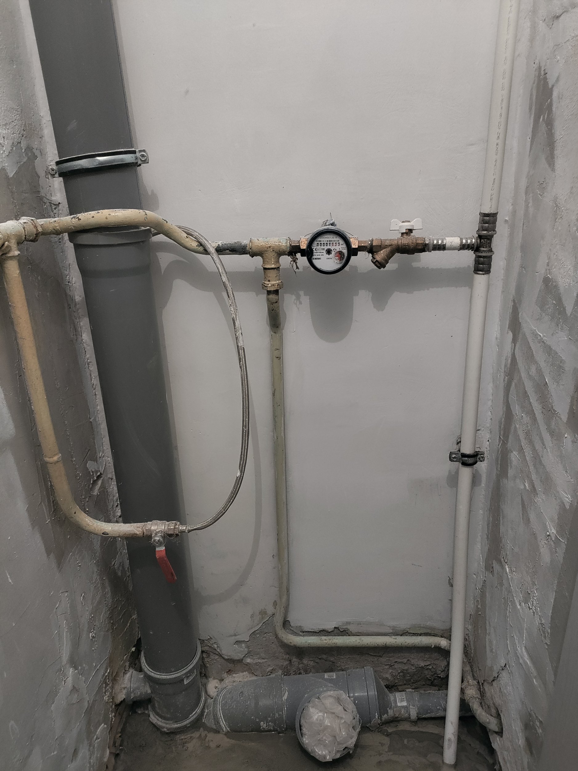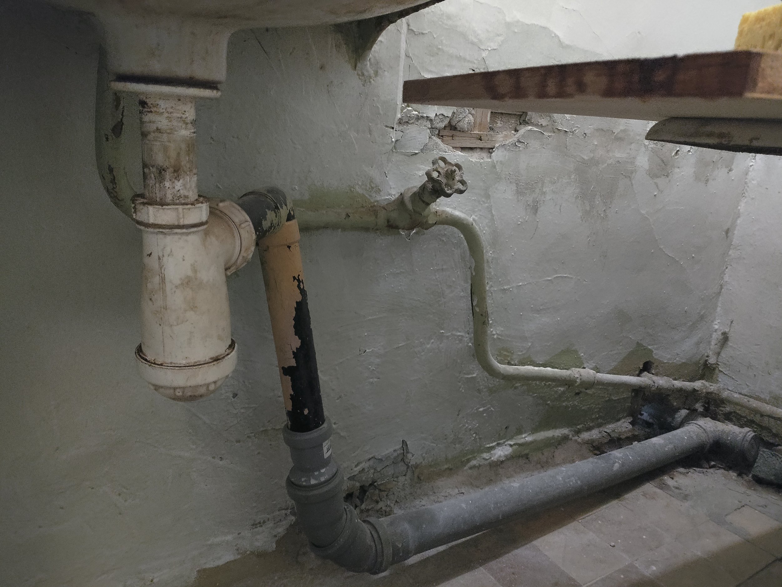 Tegemist on Kiviõlis asuva korteriga kus on vaja täielikult teha korterisisesed santehnilised torutööd. Hetkel olemas uus kanalisatsiooni püstakutoru ja uus püstaku veetoru (vt pildil). On ka tehtud äravool köögist ja äravool vannitoa kraanikausist. Paigaldatud uus veemõõtja.