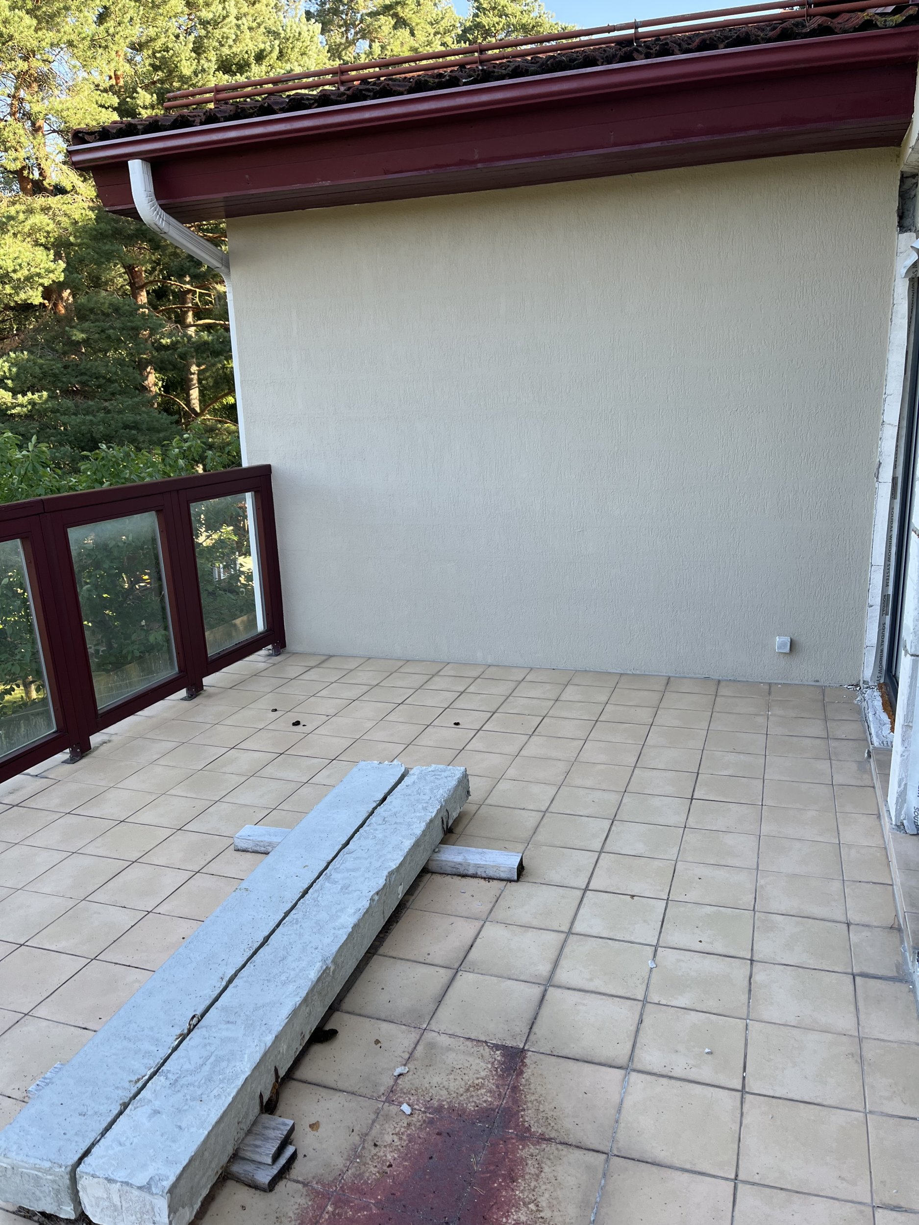 Oleks vaja ca 10m2-le avatud välisrõdul eemaldada vanad plaadid ja valada uus kiht koos uue kaldega vastupidises suunas olemasoleva kaldega . Olemasolev trapp tuleb kinni valada. Võib pakkuda ka hüdroisoleerimist, eelistatud oleks vedelplasti kihiga või Protaniga katmine. Rõdu piirded ja rõdul olevad sillused eemaldan ise.