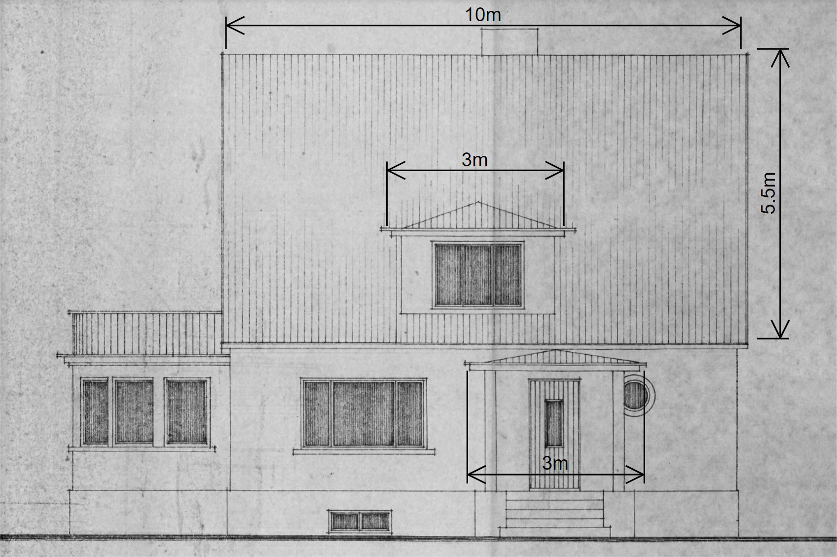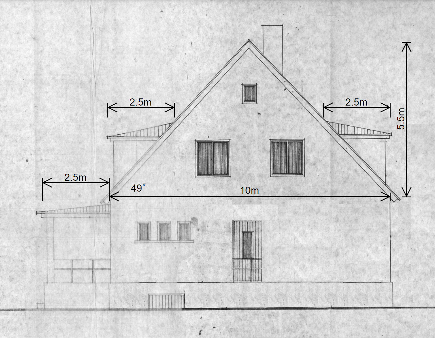 Viilkatuse harja pikkus 10m, sarika pikkus 7,7m, nurk 49 kraadi.