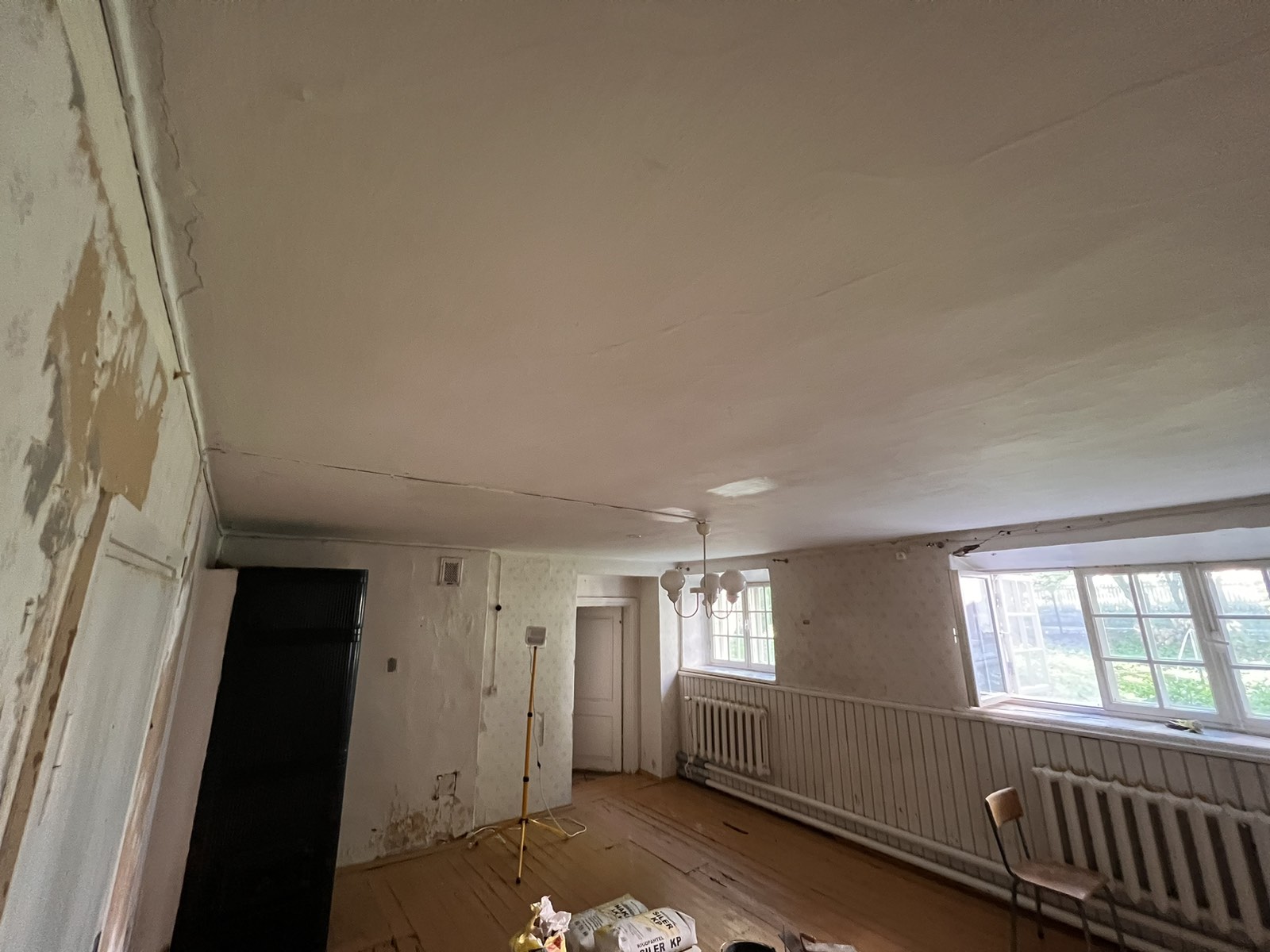 Vajalik on tapeet lahti võtta, kohati krohv (mis laguneb). Seinad tuleb kohati pahteldada, seinu tasandamata (seinad jäävad ebatasased), värvida värviga. Samuti peate lakke värvima.