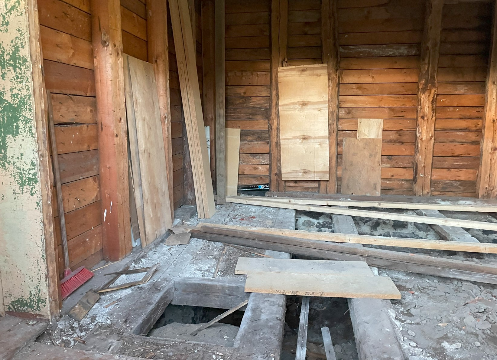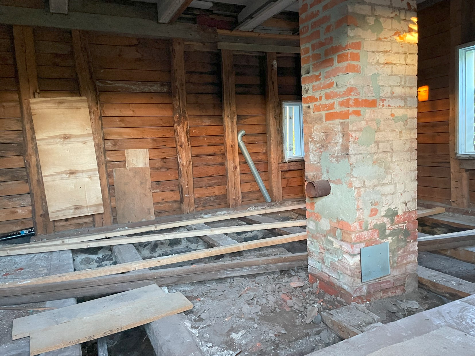Vana põrand on eemaldatud talad on näha. Materjal tellija poolt kui olen töövõtjaga kokku leppinud mida ja kui palju tal täpselt vaja oleks.