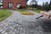 Graniitklotside paigaldamine äärekivi kõrvale.