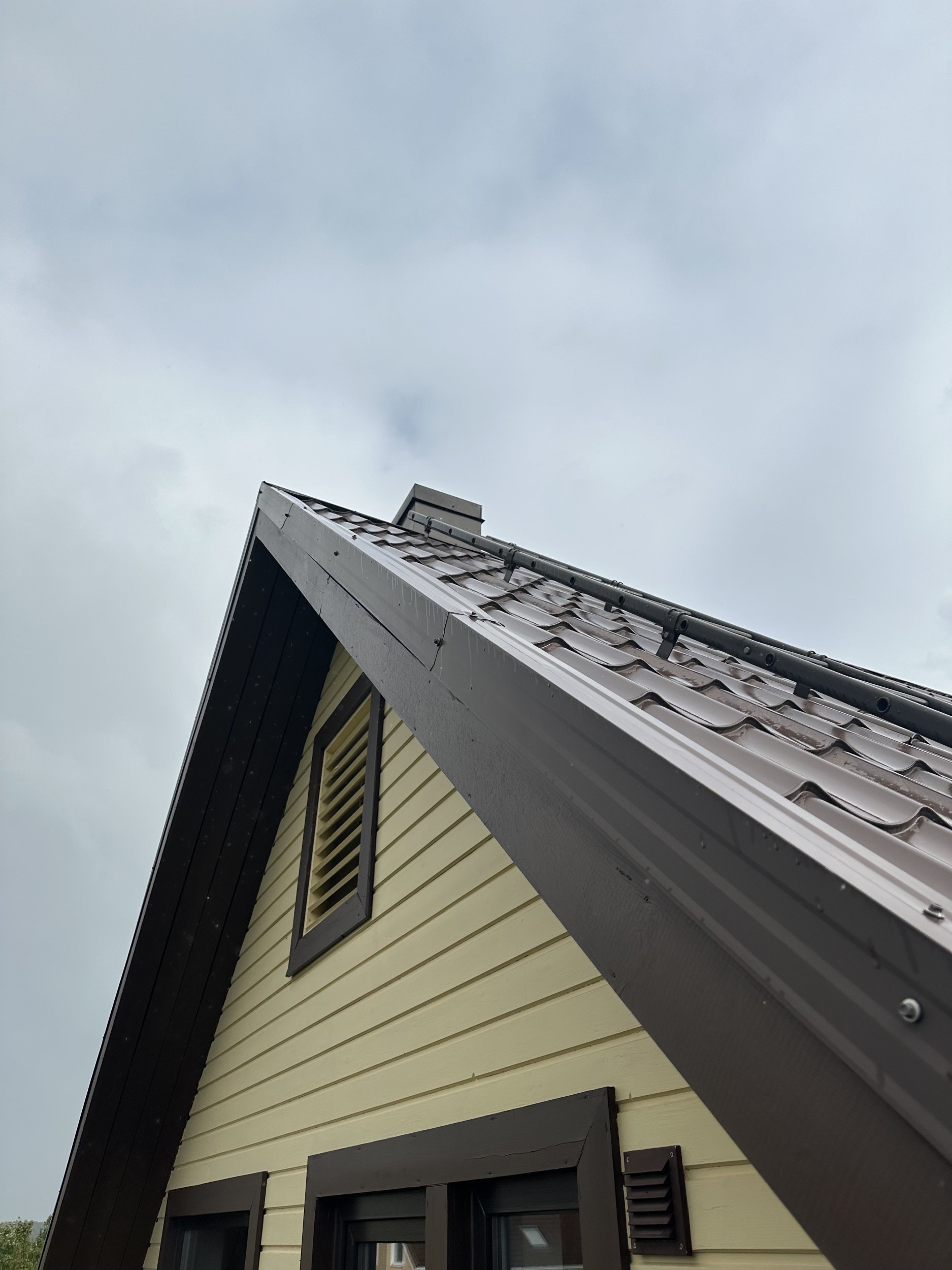 Peale korstna eemaldamist, on vaja katusesse korstnast jäänud auk kinni katta. Katuse materjal on plekk, mis on kivi katuse imitatsiooniga.