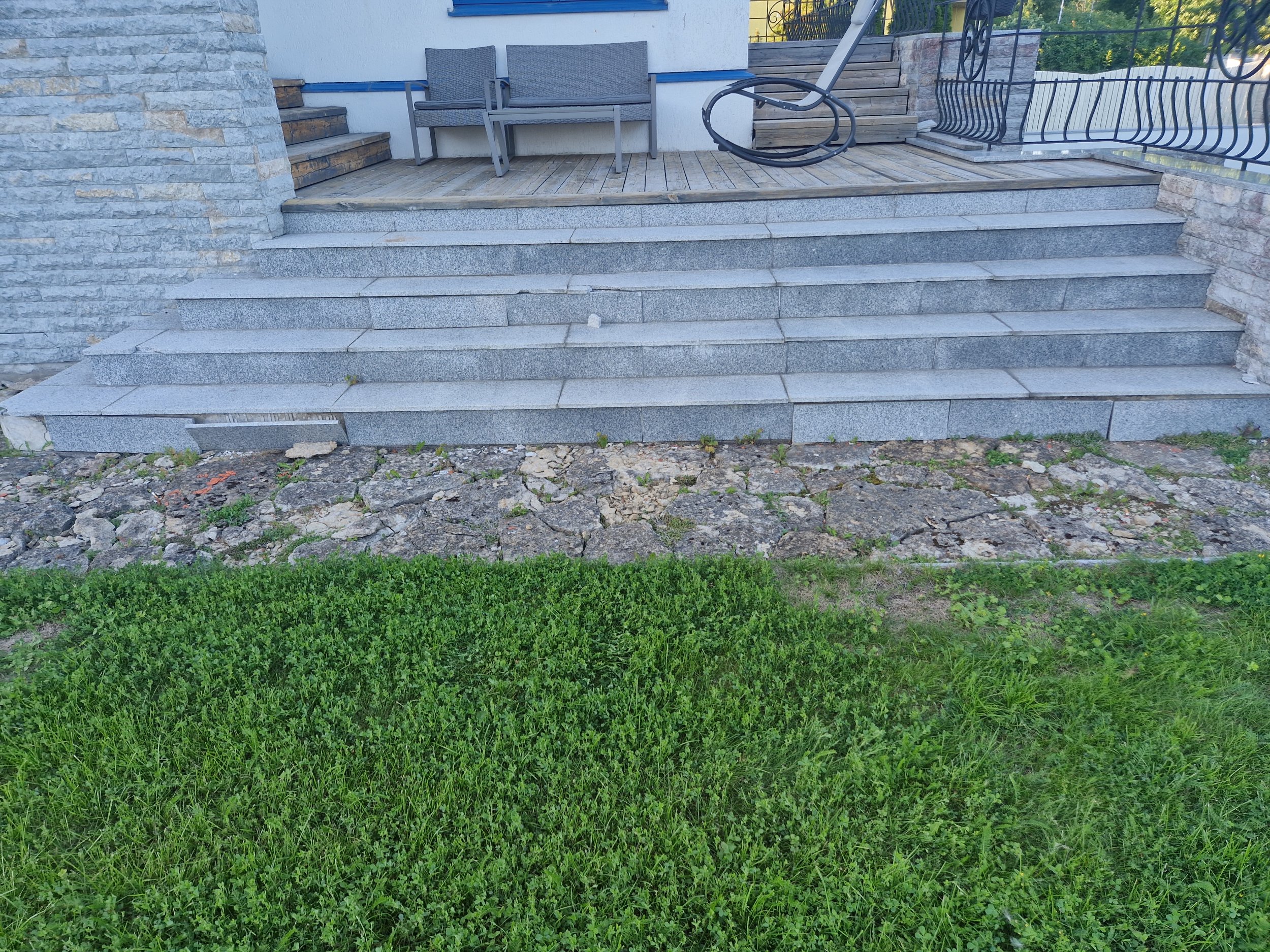 Soovin trepi renoveerimist. 10 aastat tagasi paigaldatud marmorplaadid on kõik lahti. Paaril plaadil nurgad katki kuid on olemas varud mida saab kergelt mõõtu lõigata. Trepi alune on äärmiselt tugev betoon. Probleem on olnud viletsates materjalides mis on lasknud vett läbi ja külmaga siis paisudes plaadid lahti lükanud. Kui töö saab hästi tehtud tuleb pakkumisi veel.