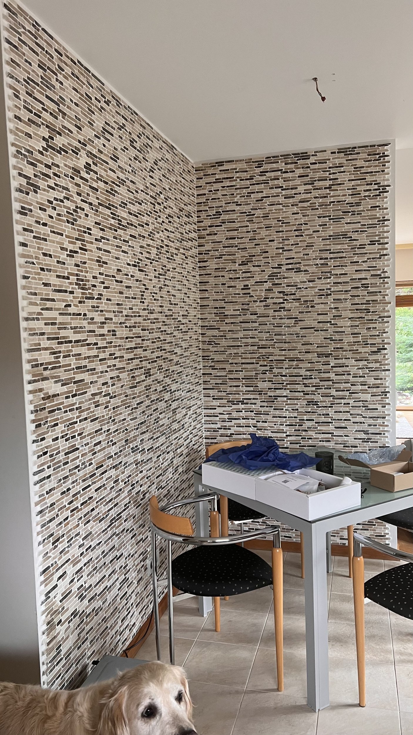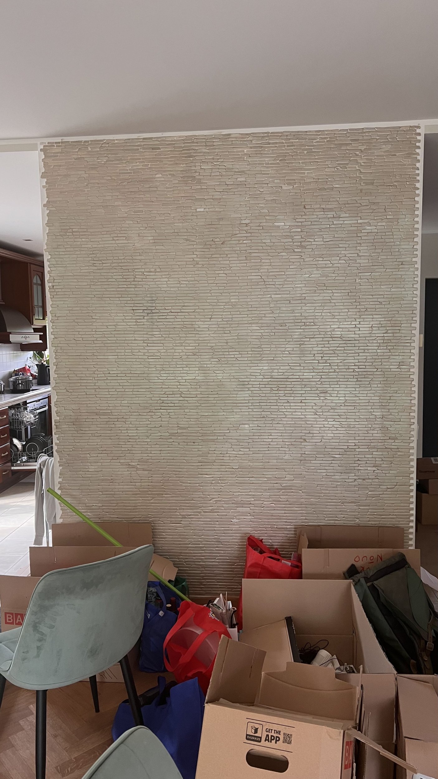 Enamus seinad on betoonseinad. Osa seintest on kaetud dekoratiivvärviga või kivimotiividega plaatidga (köögimööbli taha jääv valge plaat jääb seina ja sellega tegelema ei pea).