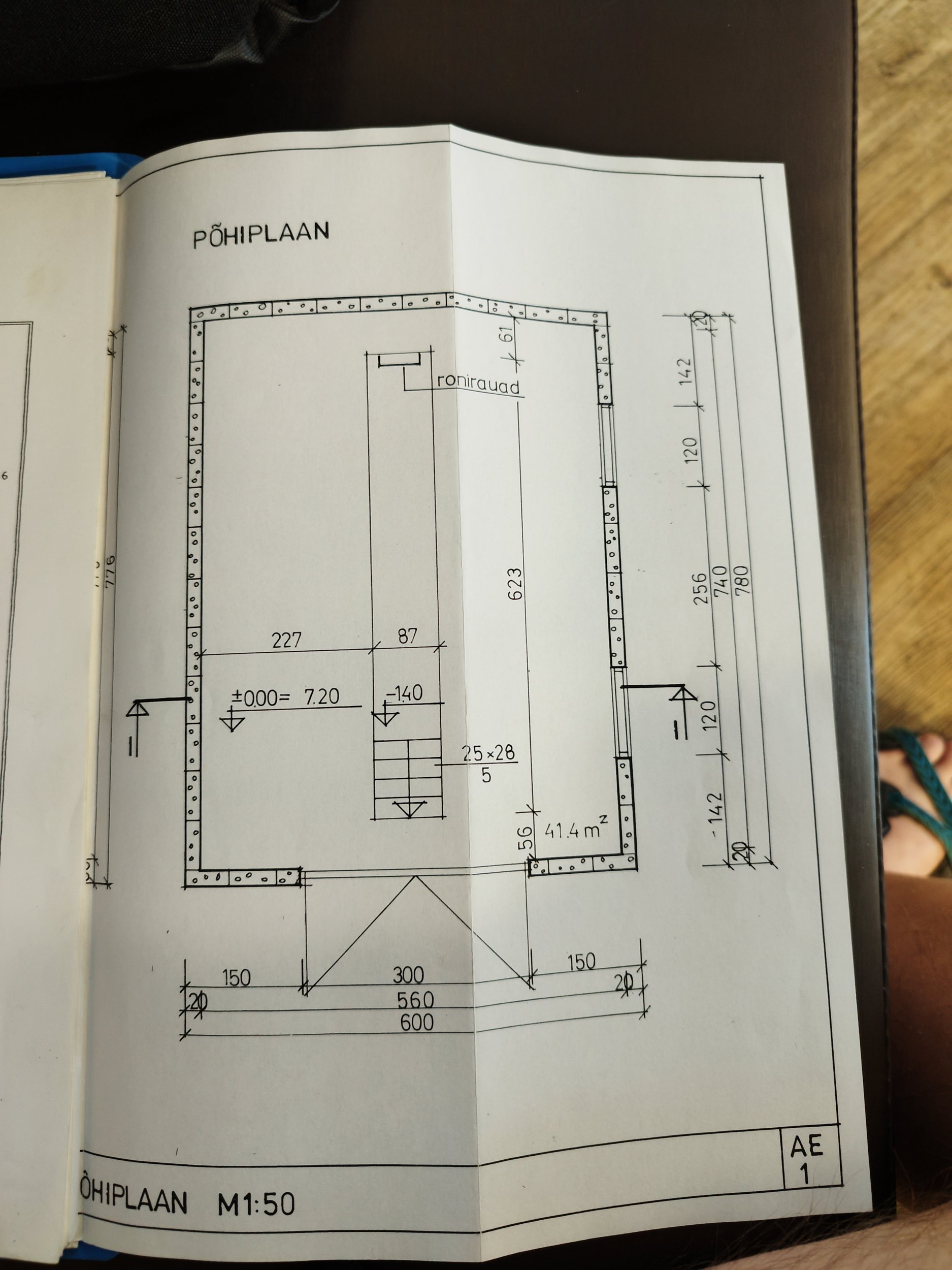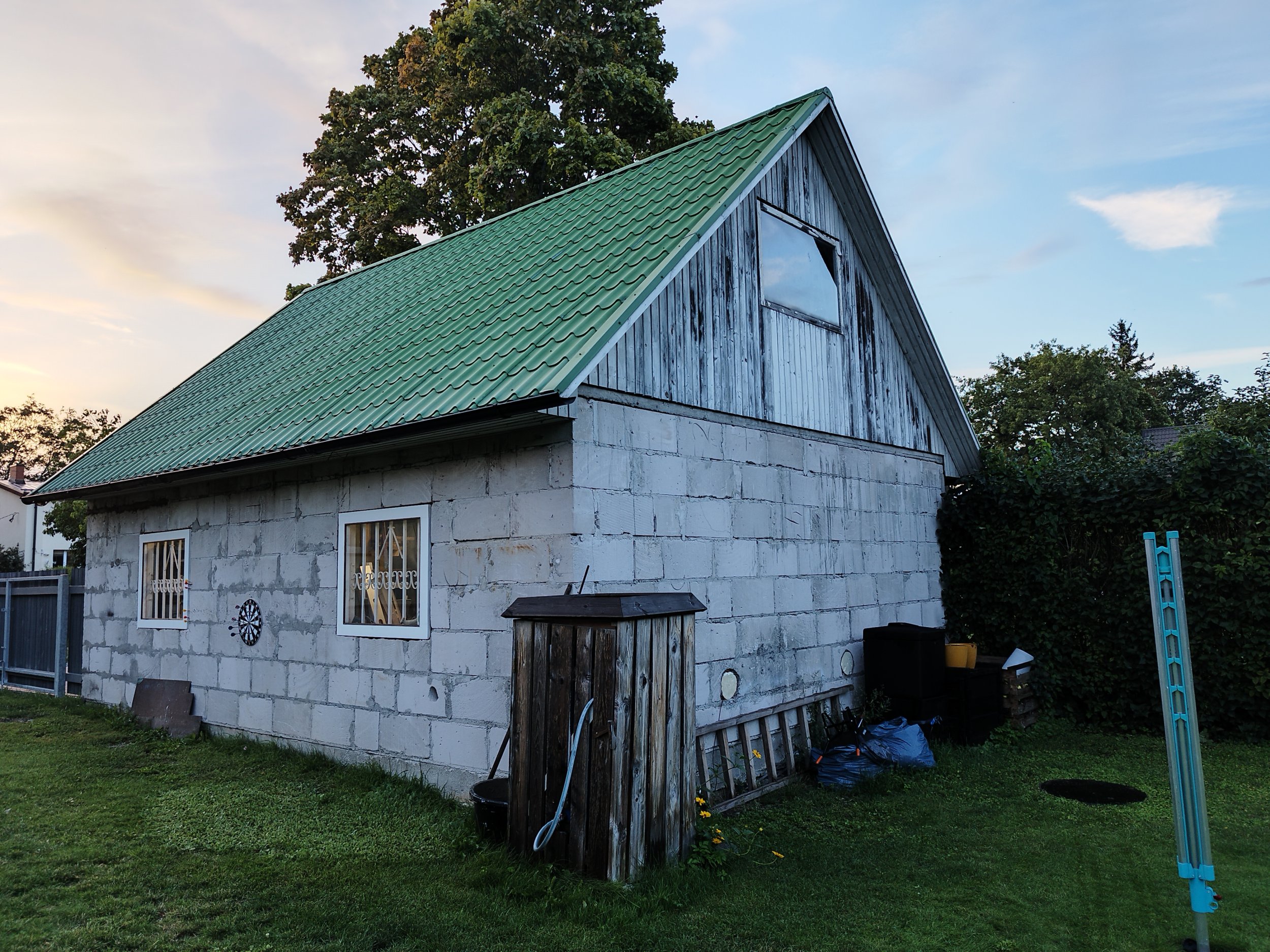 Hoone mõõtmed: laius 6 m, pikkus 7,8 m, tuhabloki osa kõrgus 2,4 m.