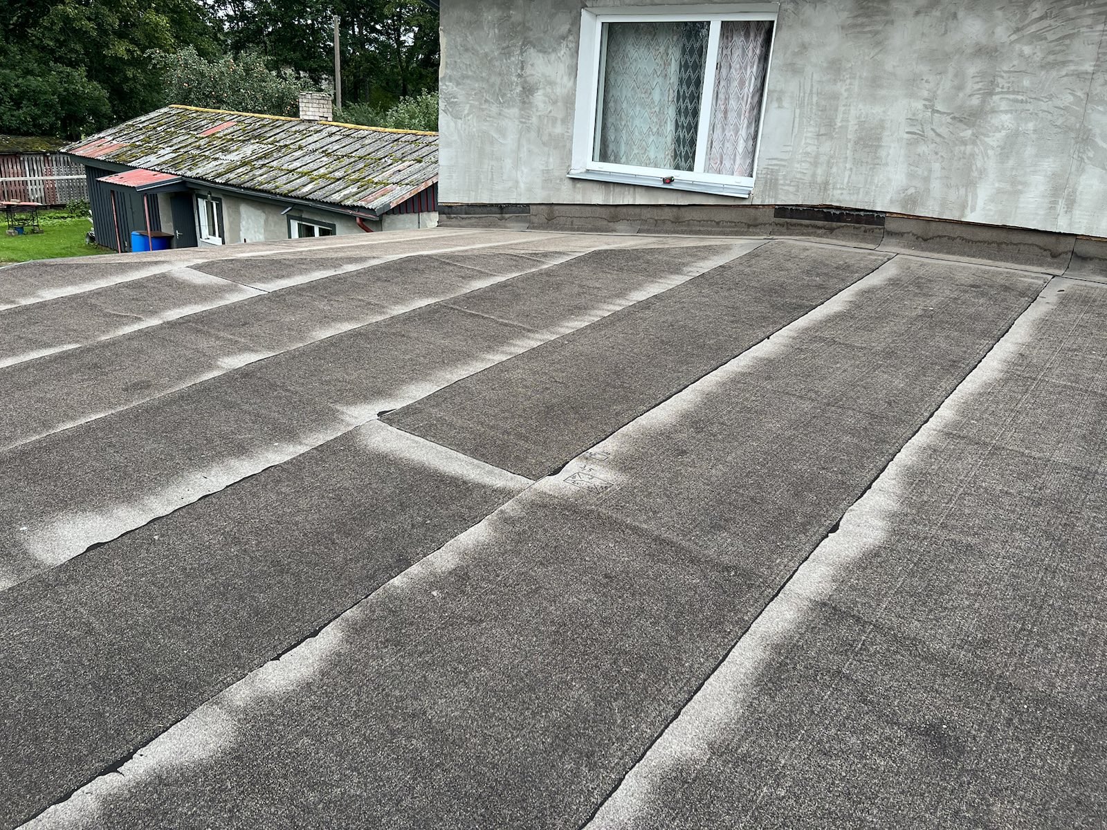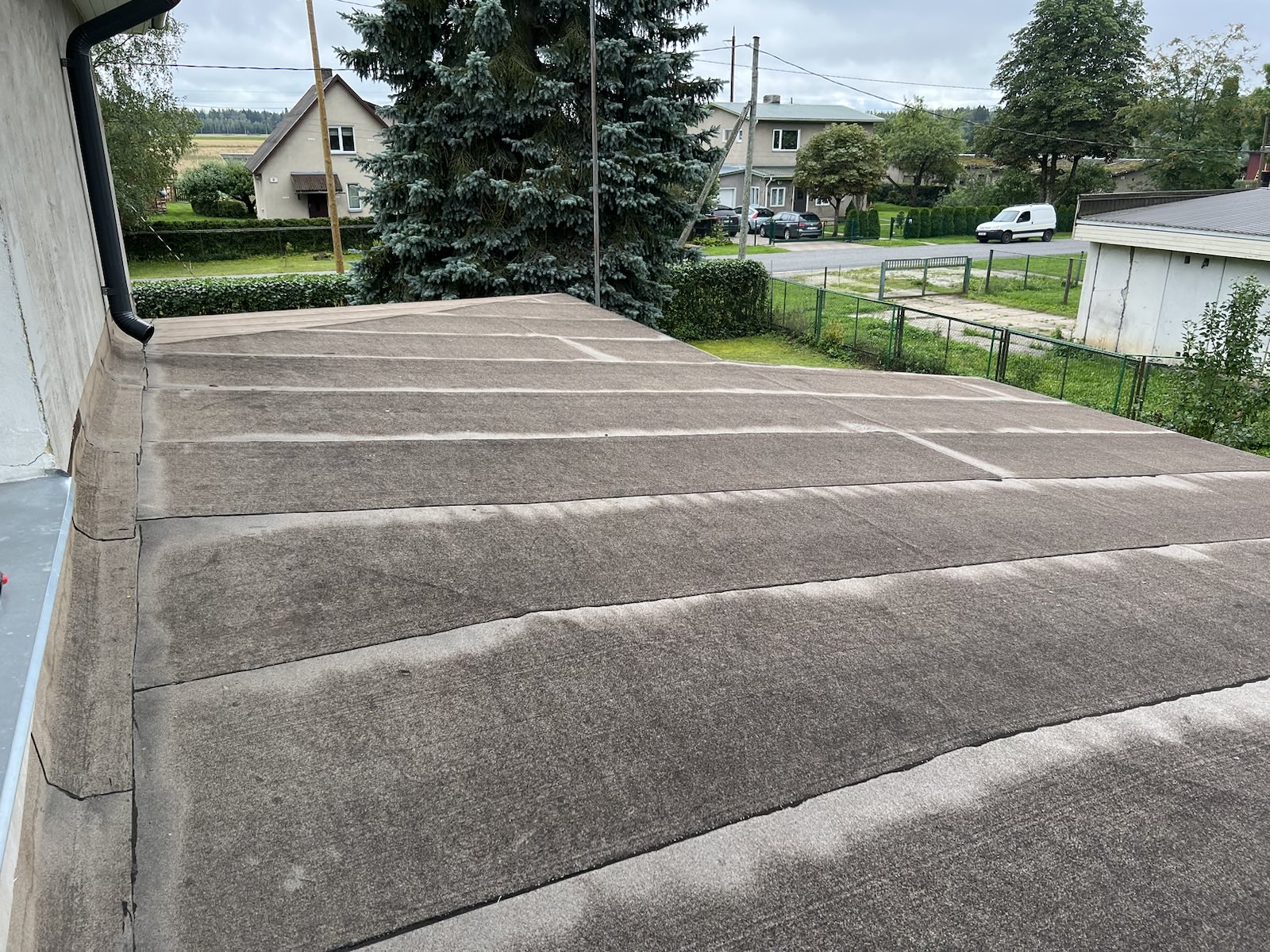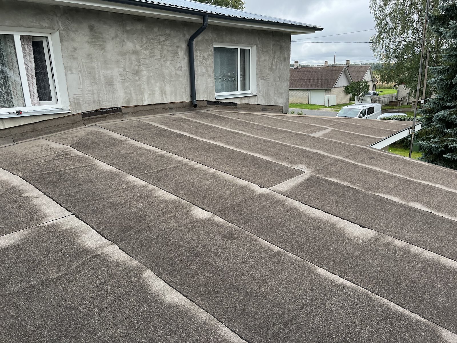SBS bituumenrullmaterjali pealiskihi paigaldus.