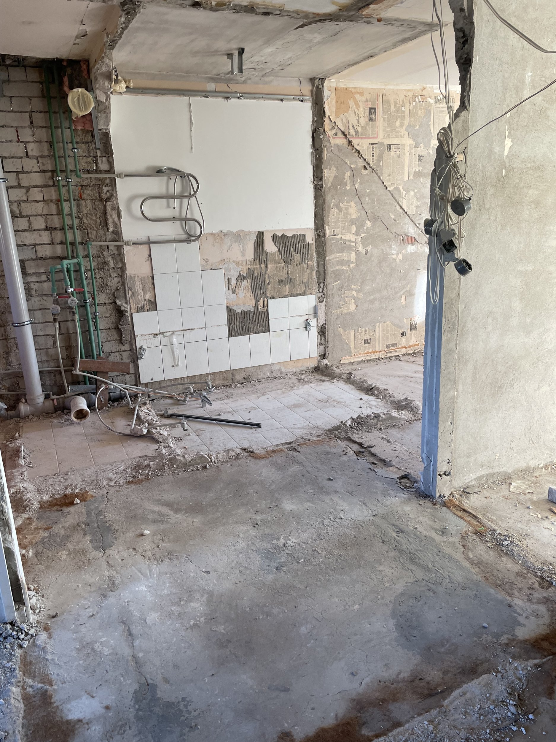 Elutoa ja köögi vahelise mittekandva vaheseina ava, WC ja vannitoa põranda järelejäänud osa lammutamine.