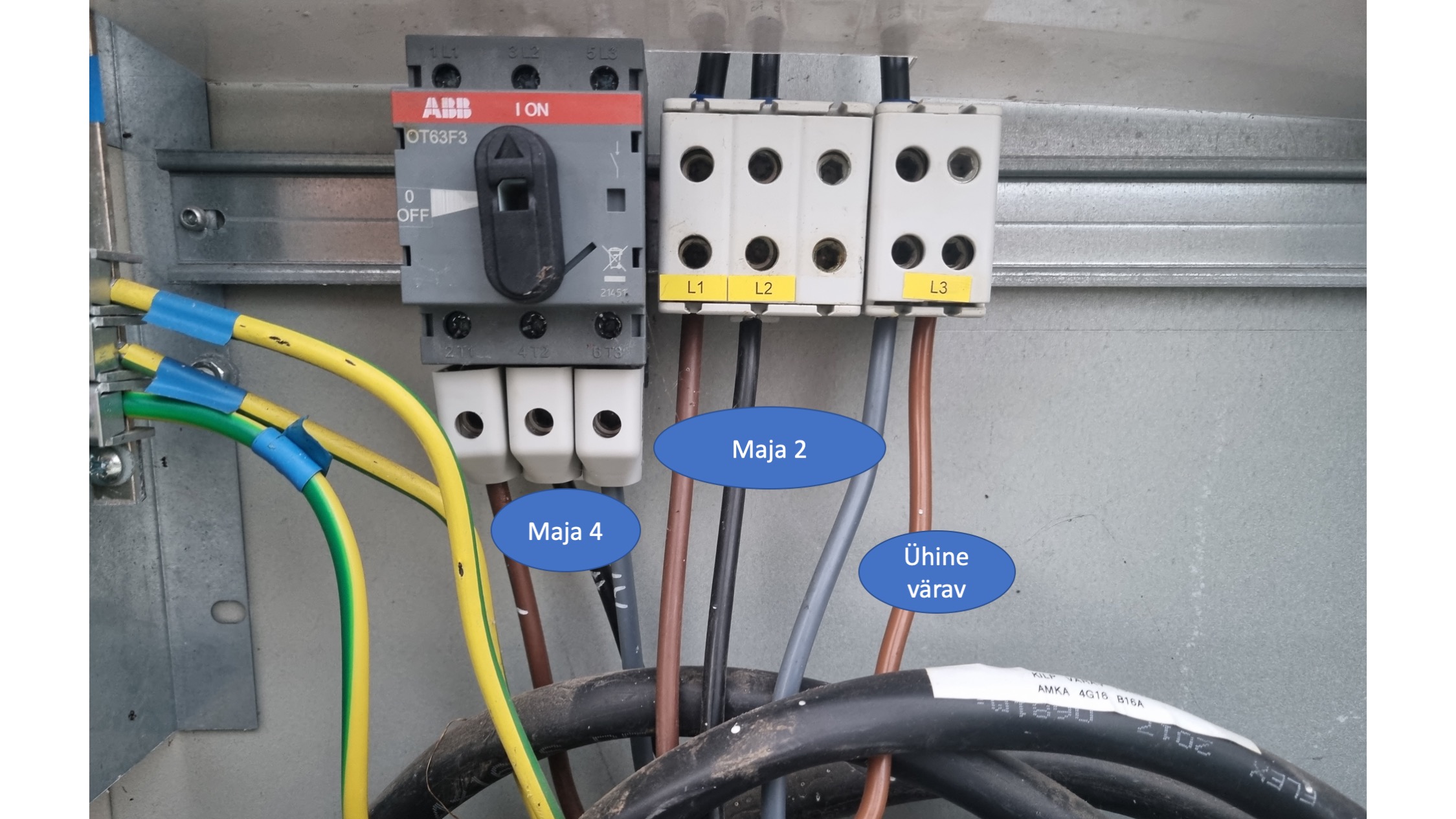 Selle töö sisu on luua võimekus, et värava faasijuhet (pildil kõige parempoolne pruun) oleks võimalik ühendada ka maja 2 vooluvõrku (jättes alles ka võimekuse ühendada see maja 4 vooluvõrku). Võimekus tähendab, et on olemas vaba klemm, kuhu alla ühendaad.
