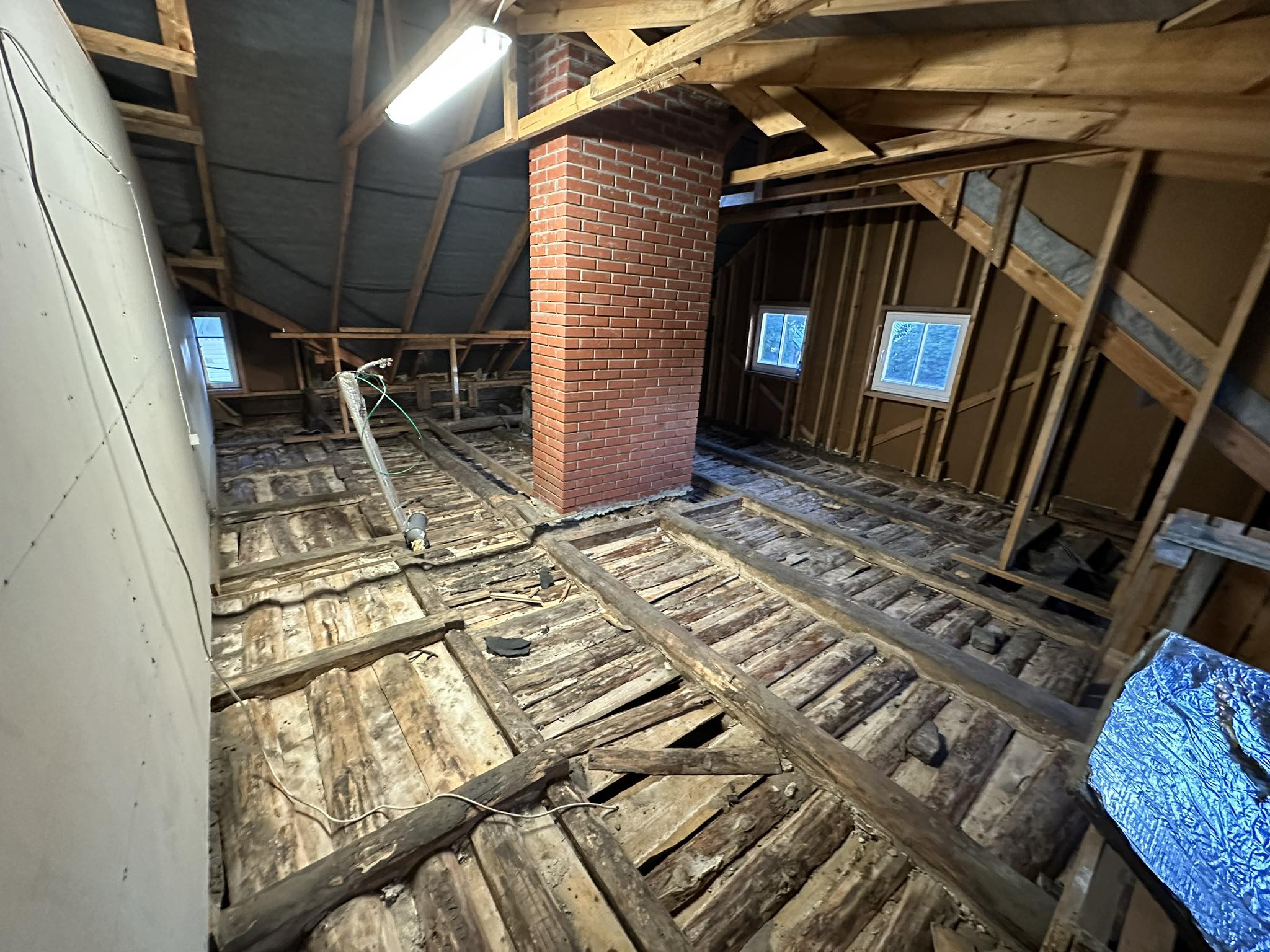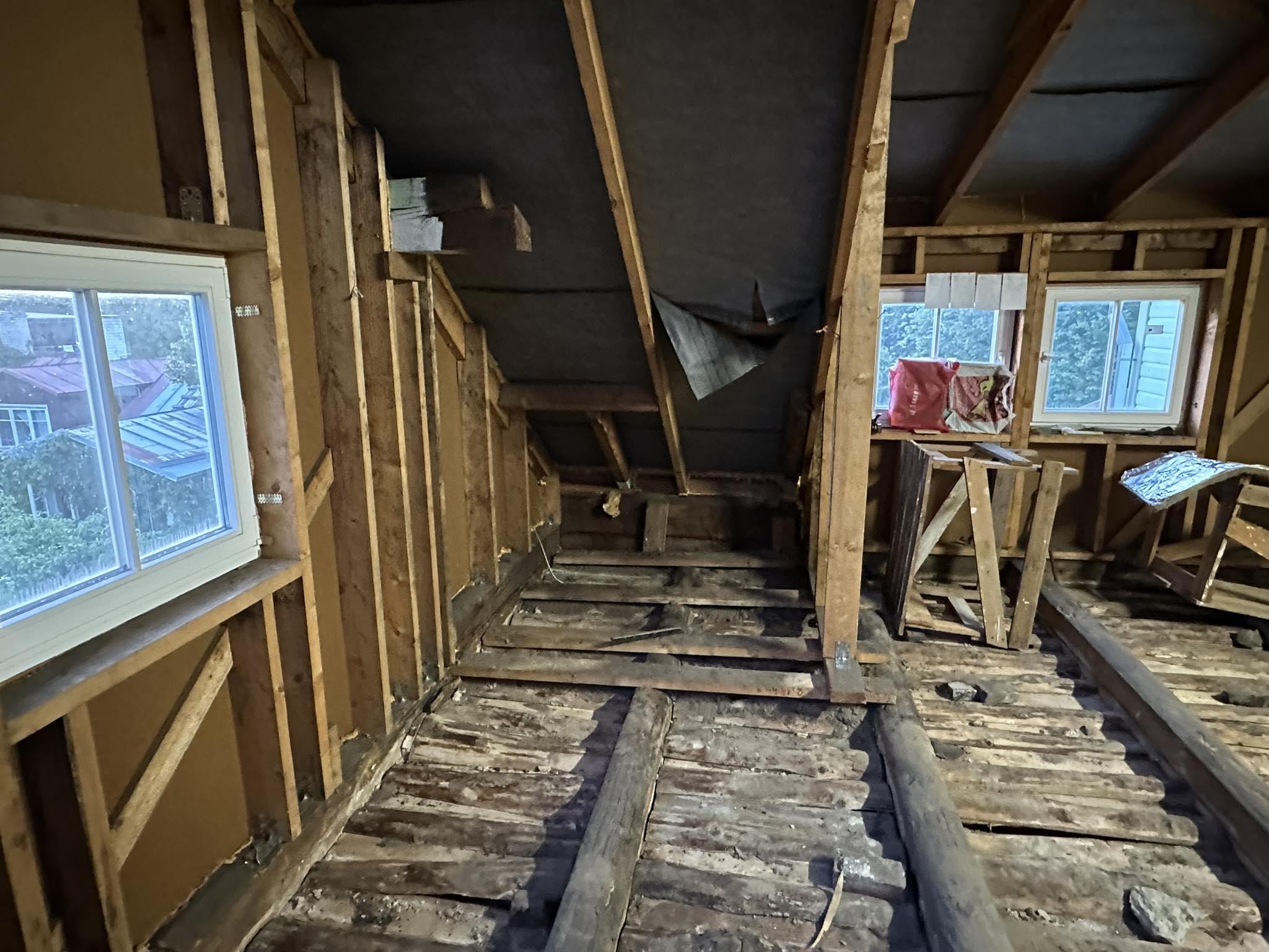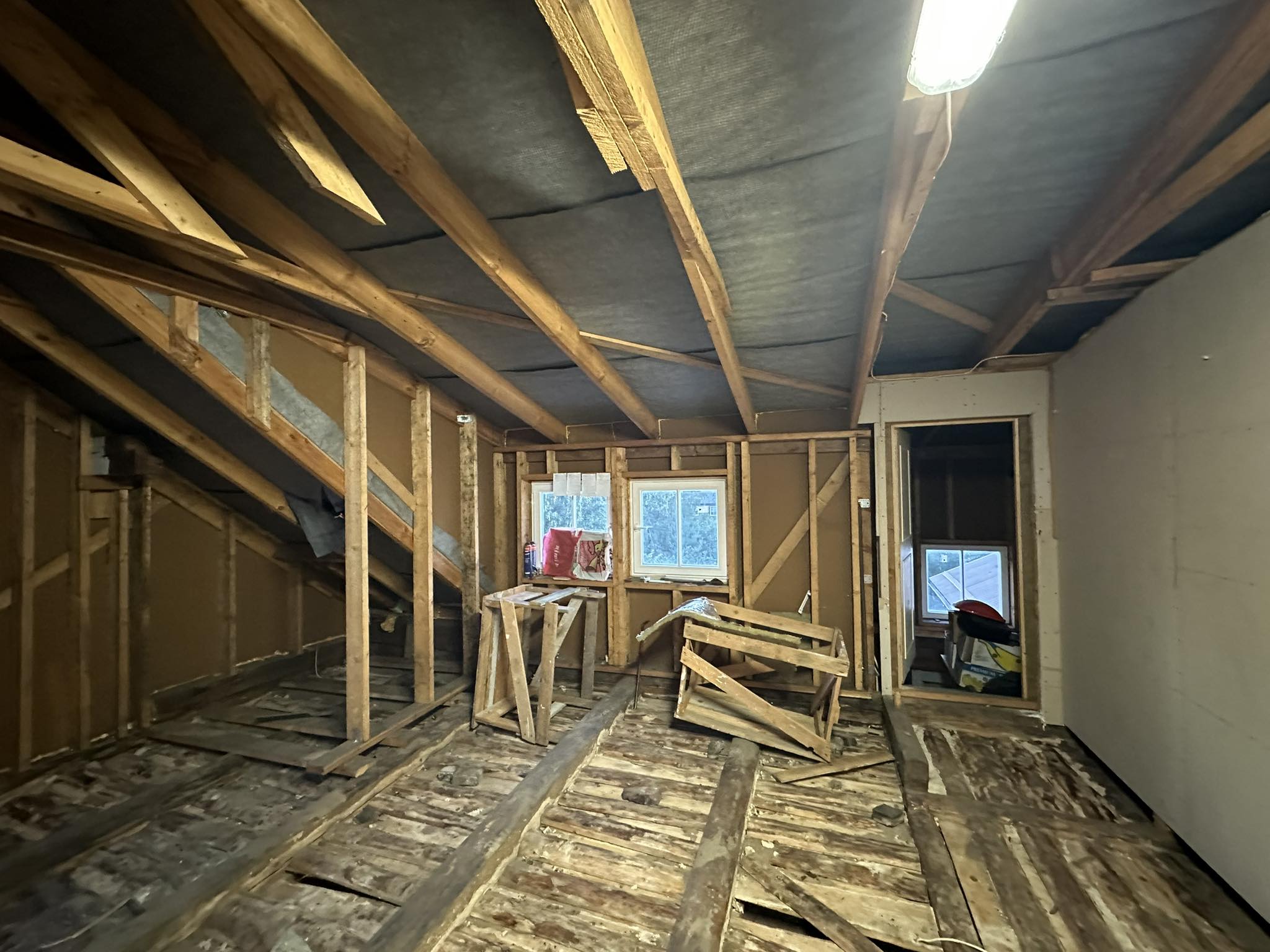 Katusekorruse korterilaienduse põranda ja seinte väljaehitus ilma viimistluseta.