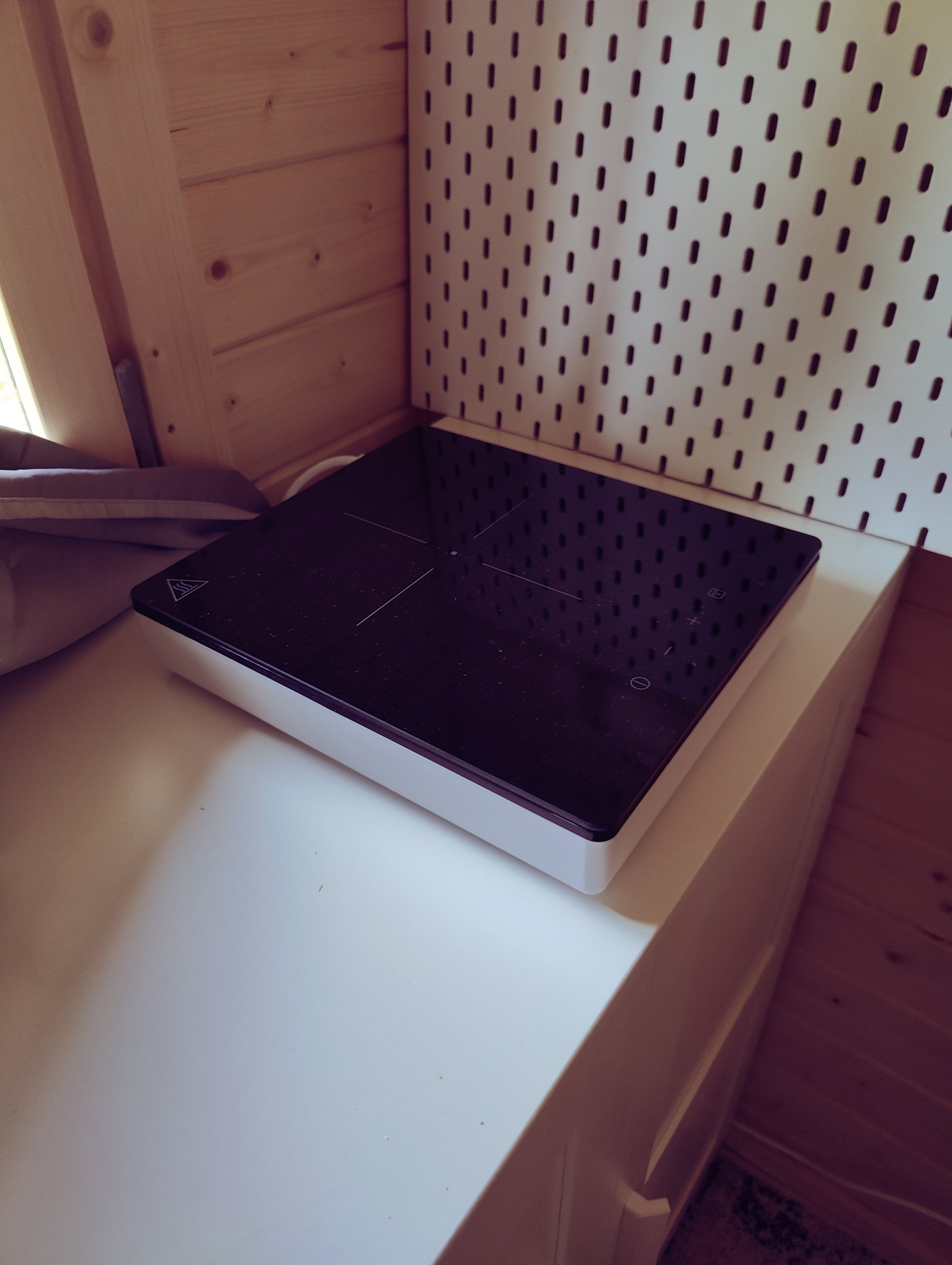 väike induktsioonpliit, väike külmik, väike infrapuna radiaator, valgustus, seinakontaktid pliidile, külmikule, radiaatorile, 2 lisakontakti muudele tarbijatele. Seda kas need peavad olema eraldi kaitsmete taga või mitte ei oska öelda