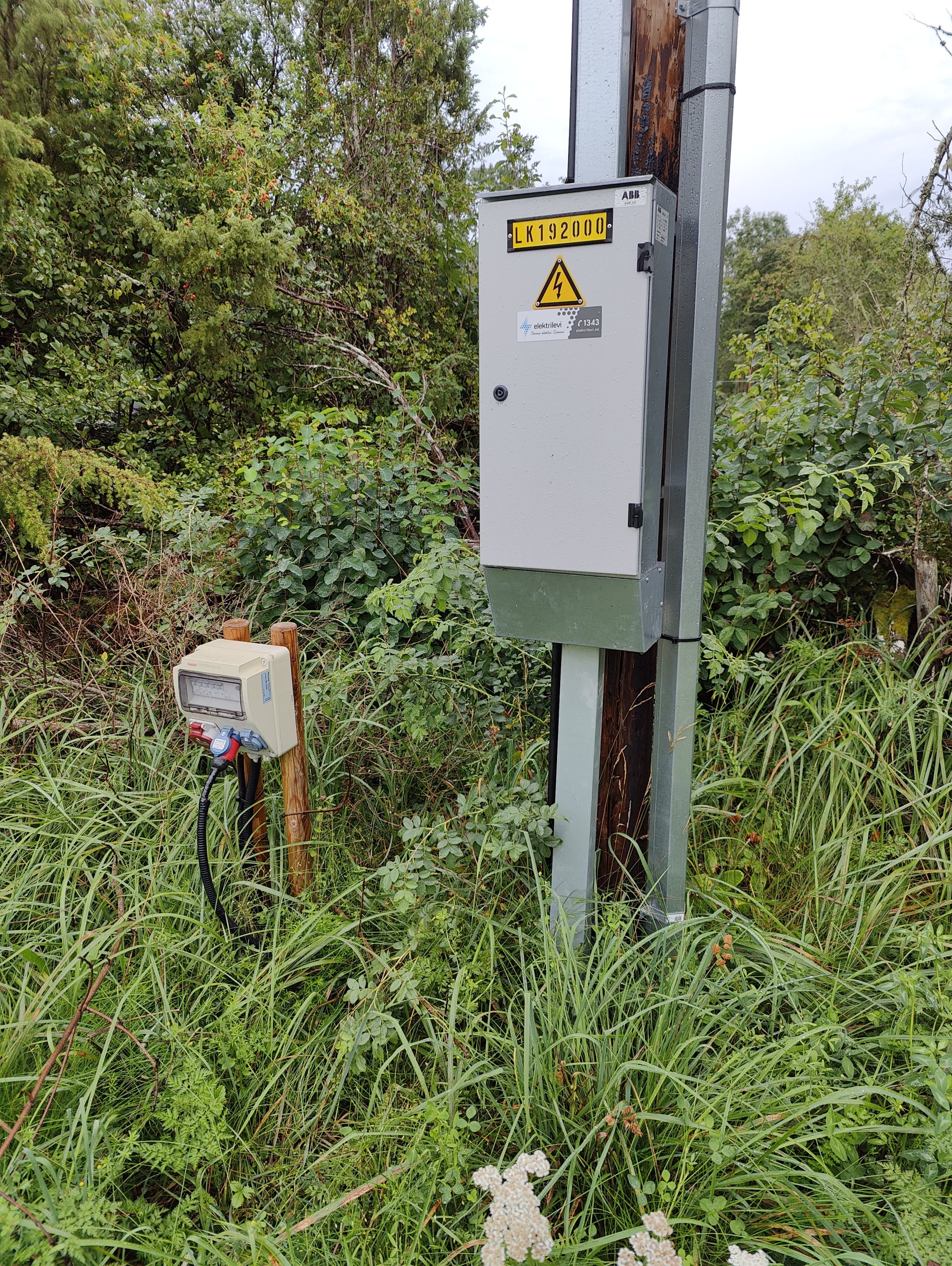 Kaabli pikkus kilbist majani ca 45m. Praegu on aiamajja veetud elekter maapealses kõris oleva kaabliga ajutisest elektrivõtu punktist.