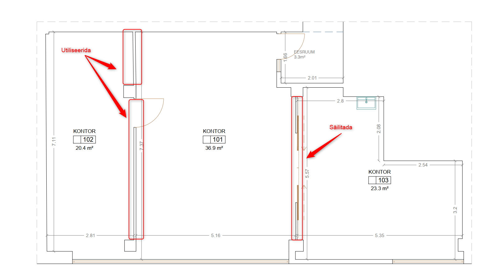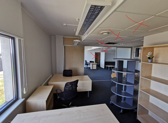 Kontori siseviimistluse lammutamine ja utiliseerimine.