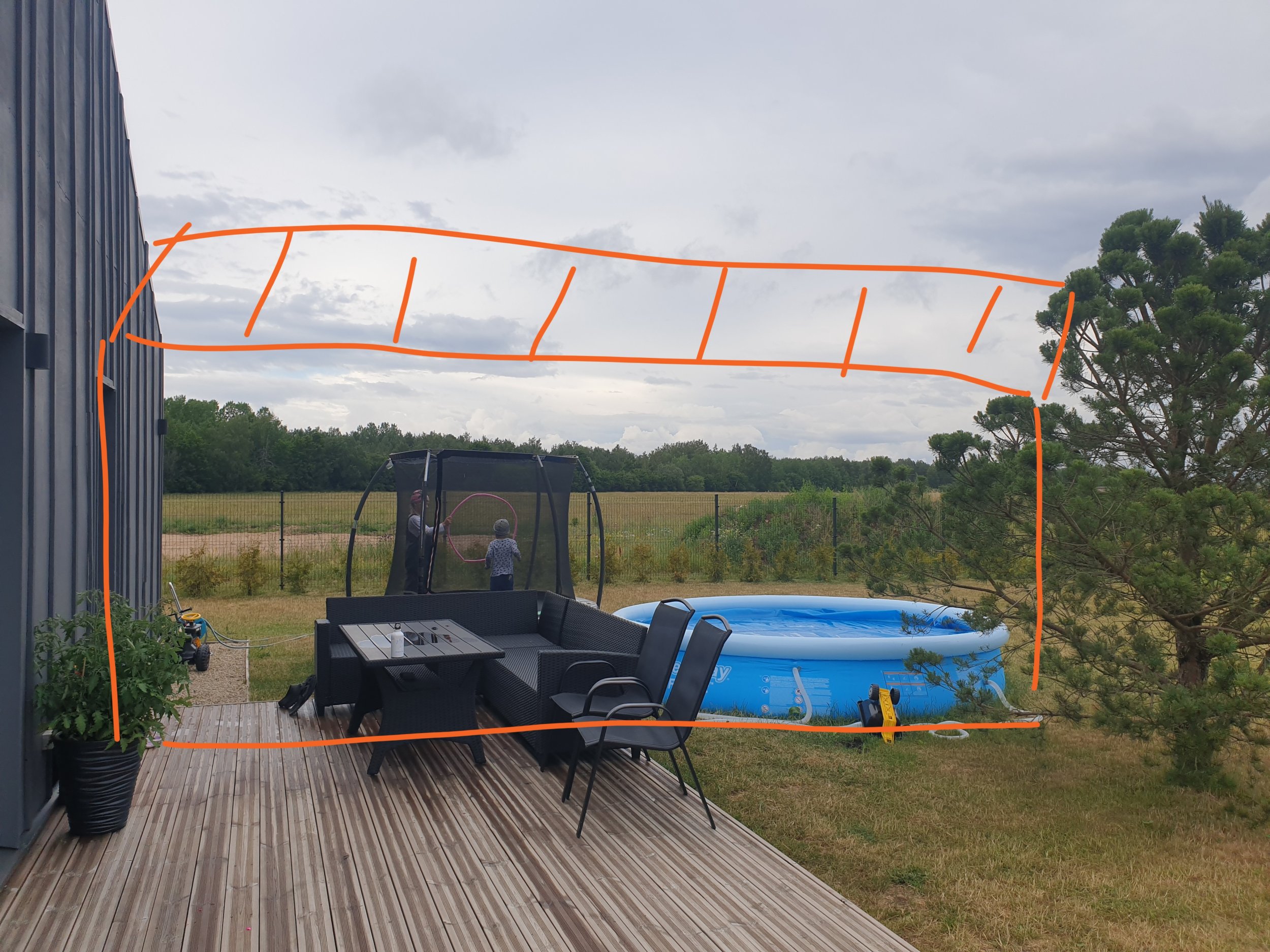 Maja otsa vaja ehitada terrassi pikendus koos katusega, kogu pindalaga umbes 33m2, mõõtudes 4.6mx7m.