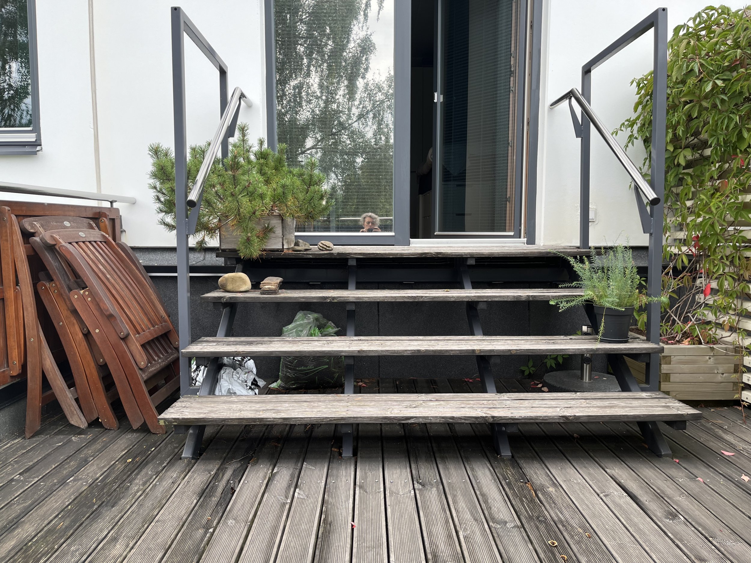 Uue terrassi ehitus katusematerjalile 14 m2 ja trepikonstuktsioonile 3,4 m2.
