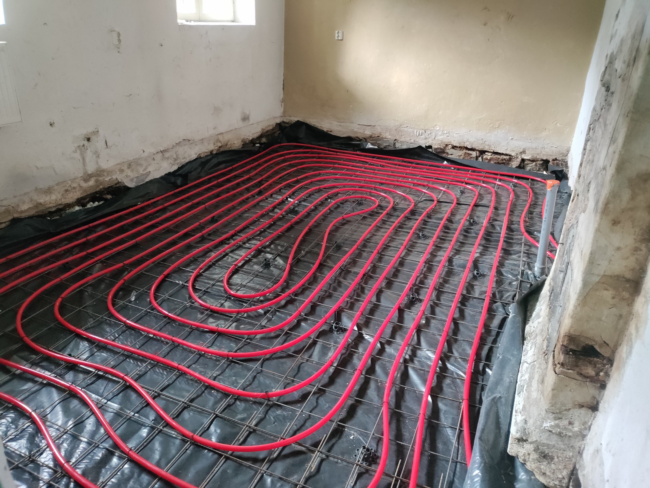 Tellija poolt ette valmistatud EPS soojustus, kile, armatuur, kandurid, põrandakütte torustik, trapid.