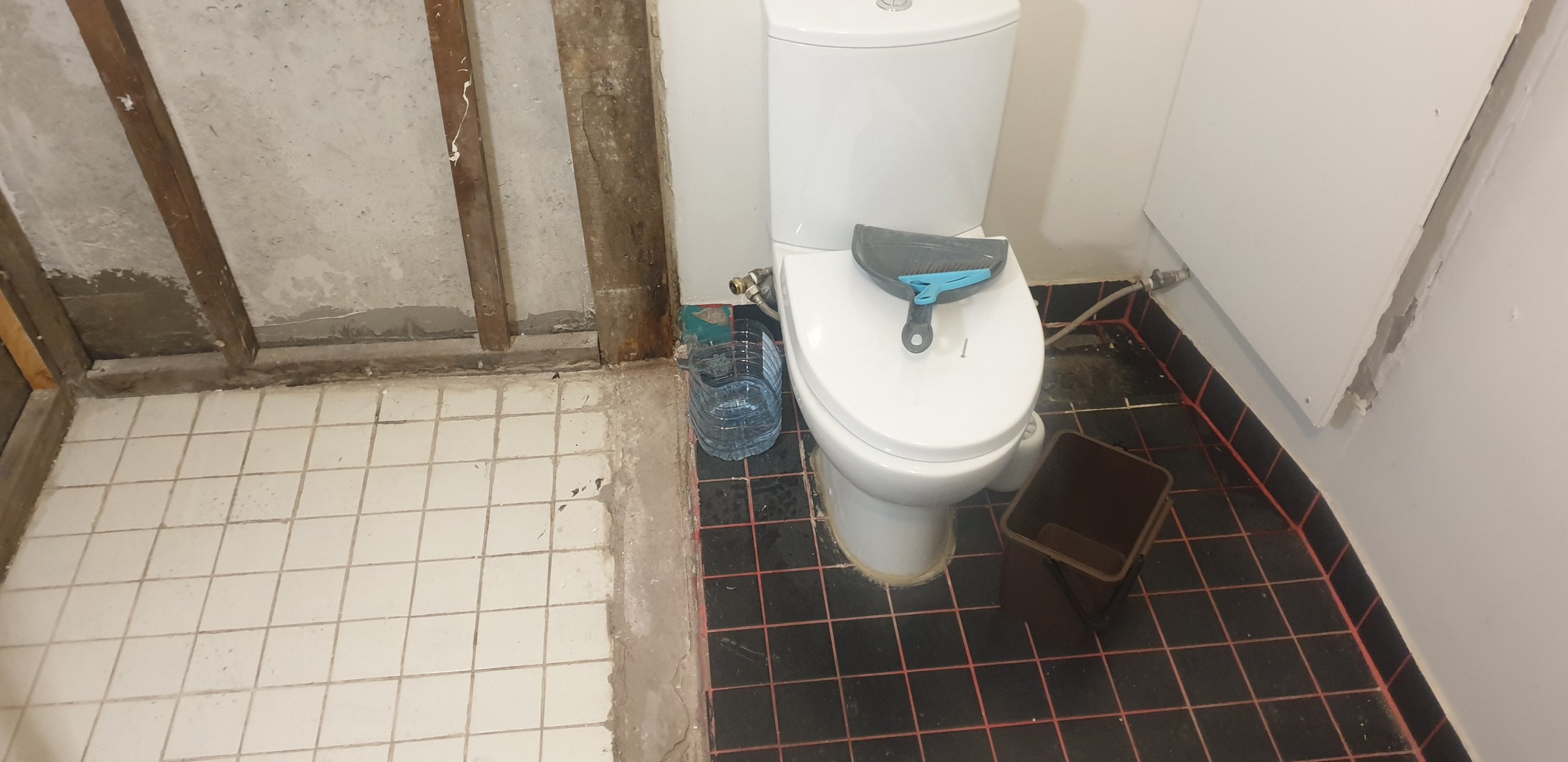 Материал, например, плитка, цемент уже на месте.
