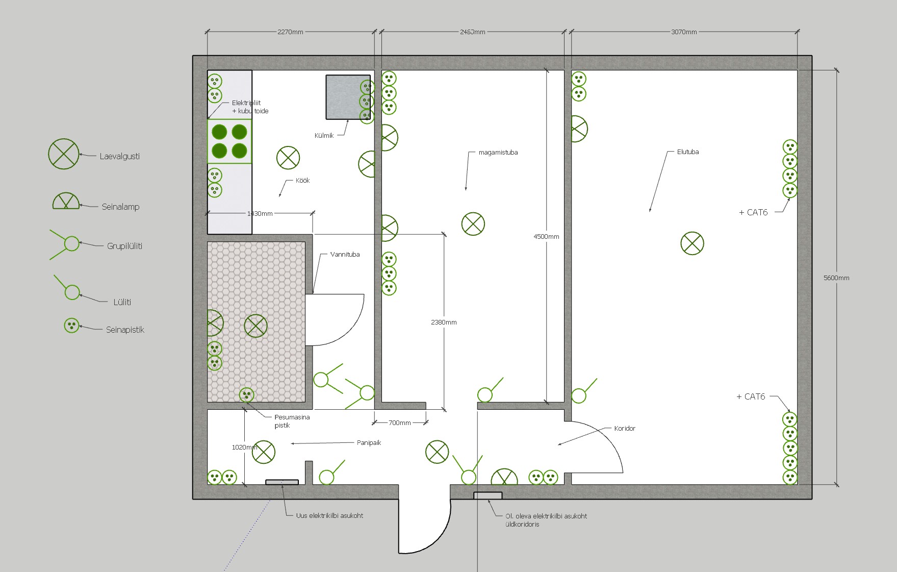 Vajalik koostada elektriprojekt ning hinnapakkumine elektritöödele vastavalt alljärgnevale tööde mahule: