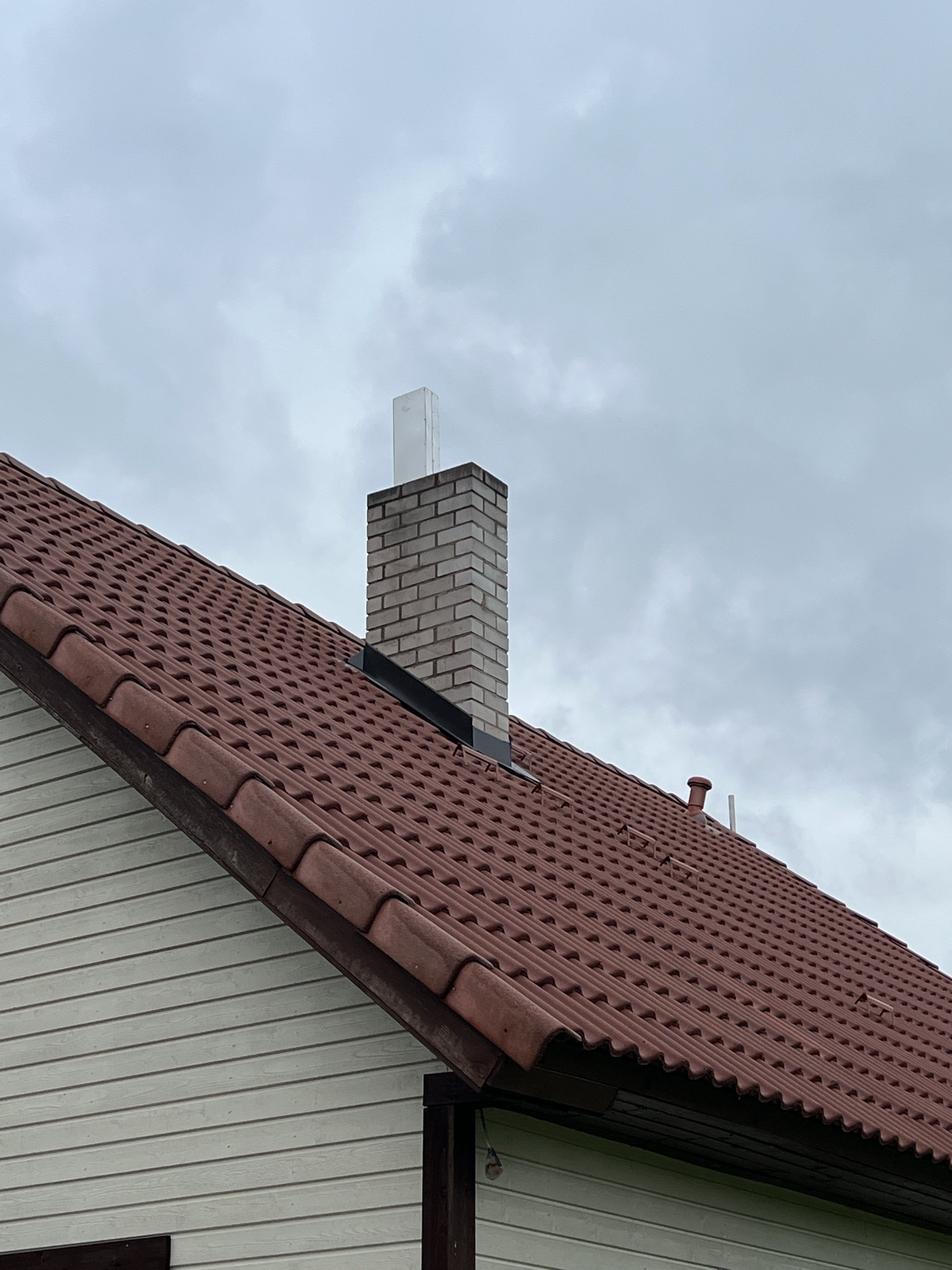 vihmade ajal tuleb korstna juurest vesi läbi. Juba pandi uus plekk aga tundub, et lühike. Soovin pruuni värvi plekki alates katuse äärest kuni korstnani ja korstna ümber