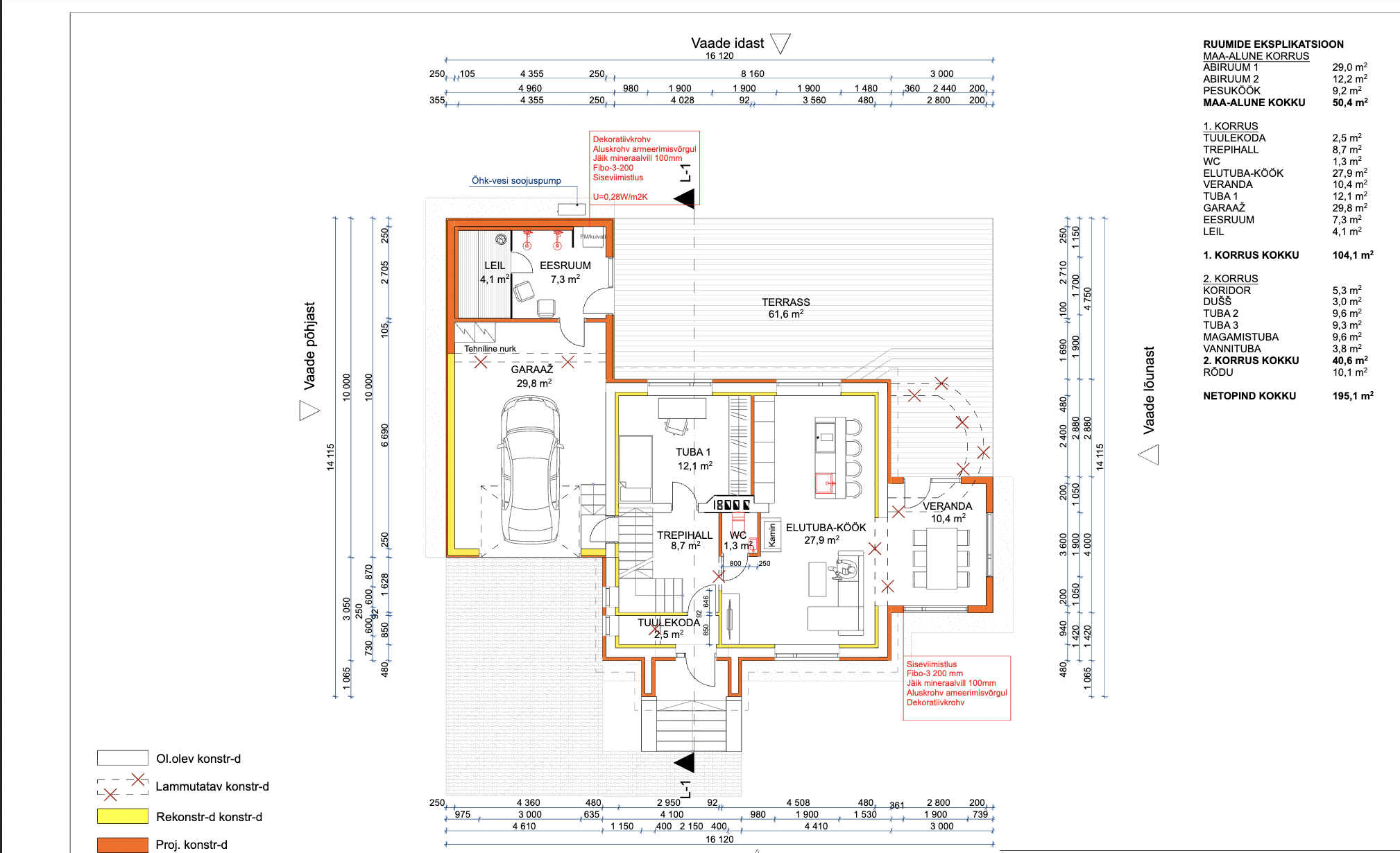 Rekonstrueeritud eramule majasisese VK koostamine.