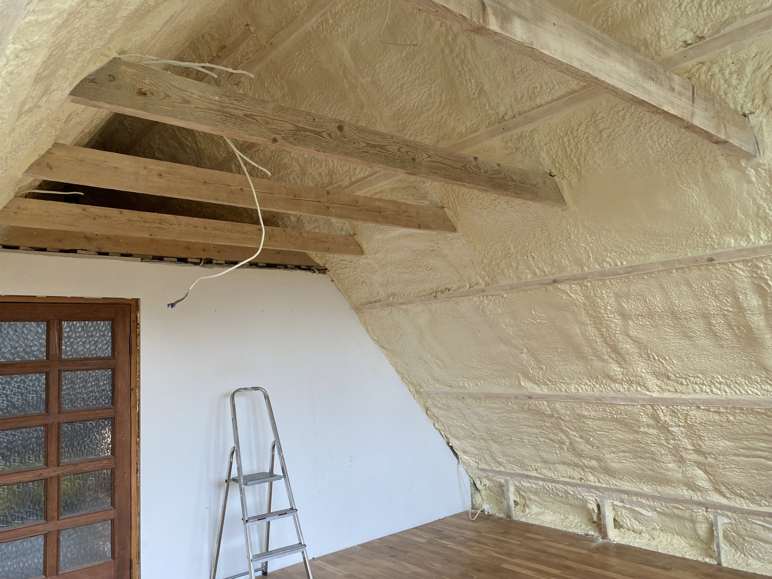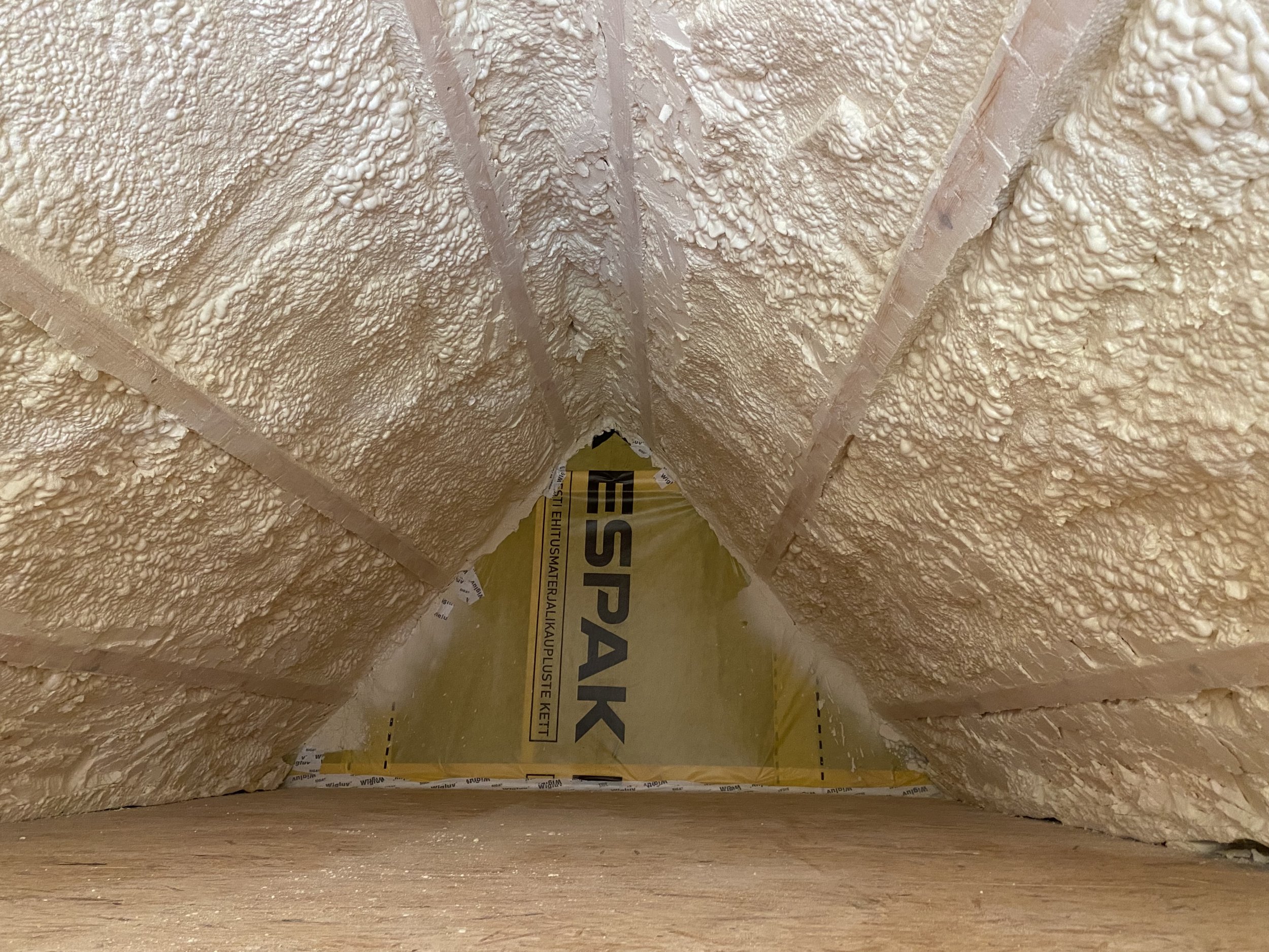 Tuba on kaldseintega. Üks osa toast on kõrvaltoa lae peale ulatuv sopp.