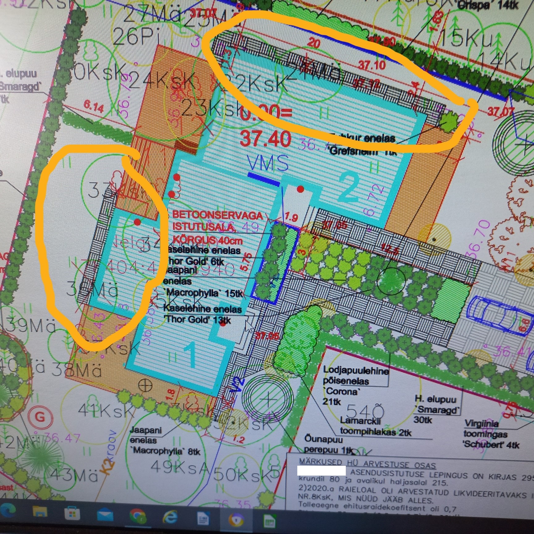2. Teine külg 1 meeter x 8 meetrit (sellel küljel on vaja kivi sisse sobitada kaks vihmavee äravoolu trappi- vaata fotot)