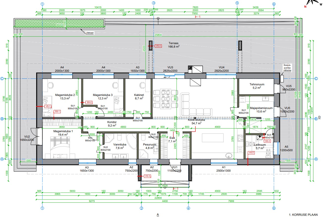 Soovin tellida eramajale konstruktiivset põhiprojekti. Eelprojekt on olemas ja ehitusluba väljastatud. Ehitusgeoloogiline uuring teostatud.Ehitusalune pind 153m2. 1 korruseline eramu. Lisaks sooviks ka eriosade projekte.