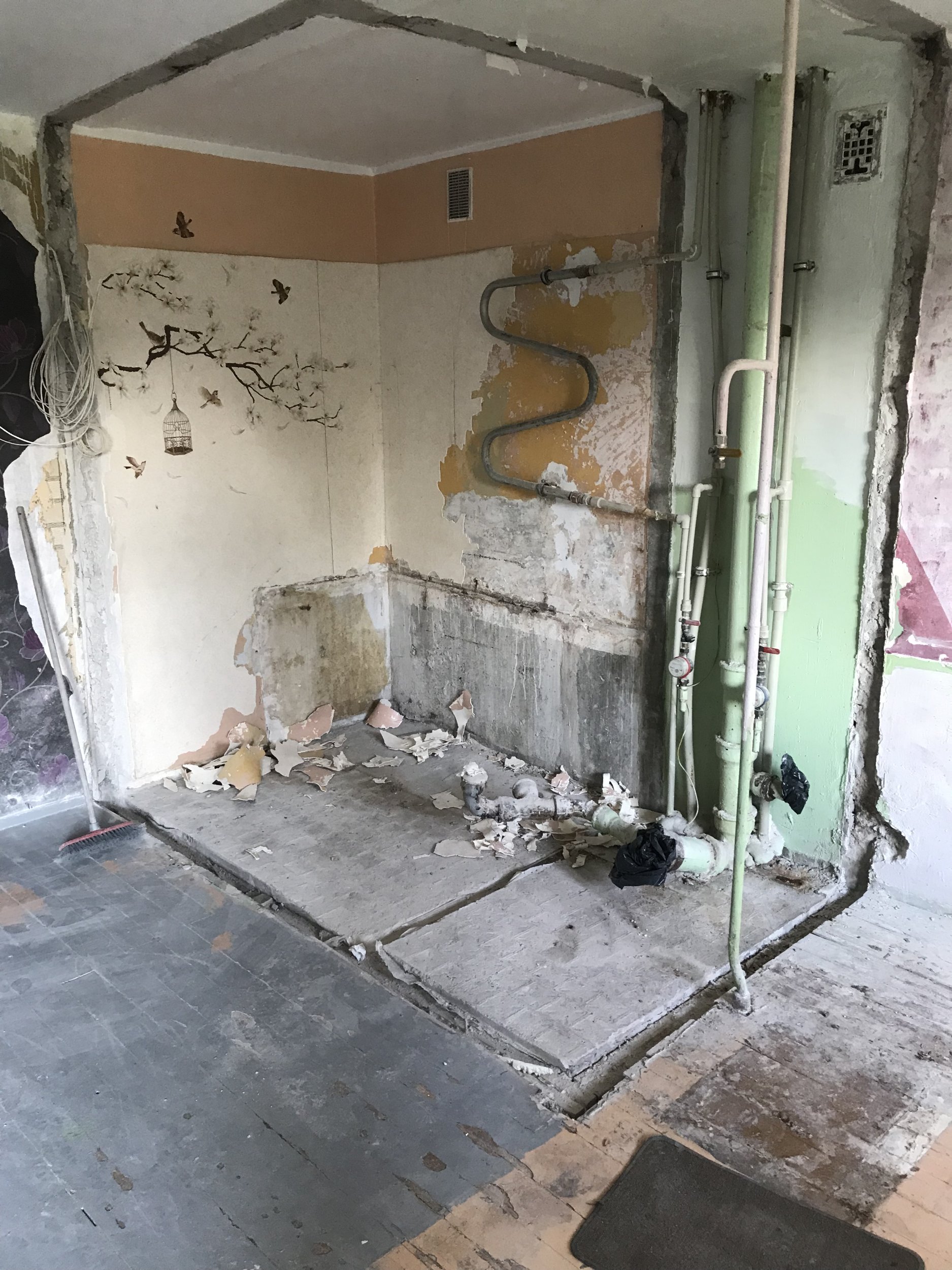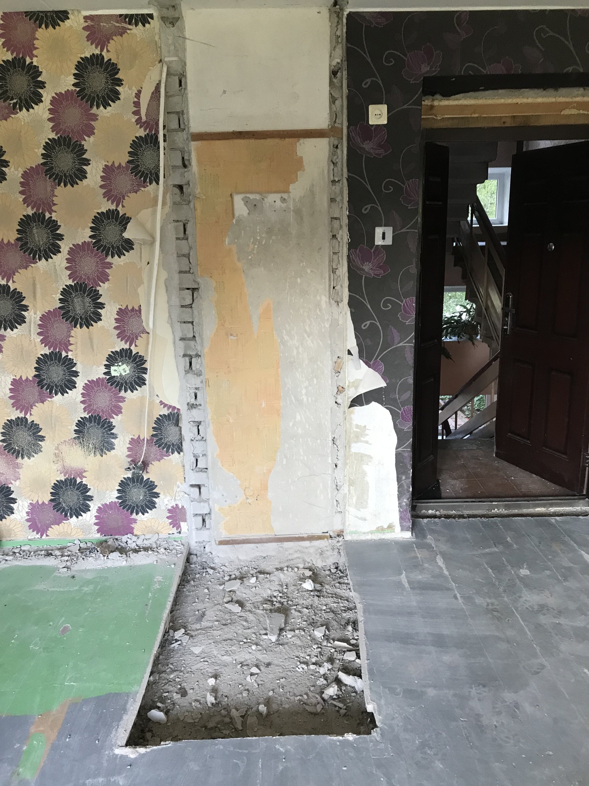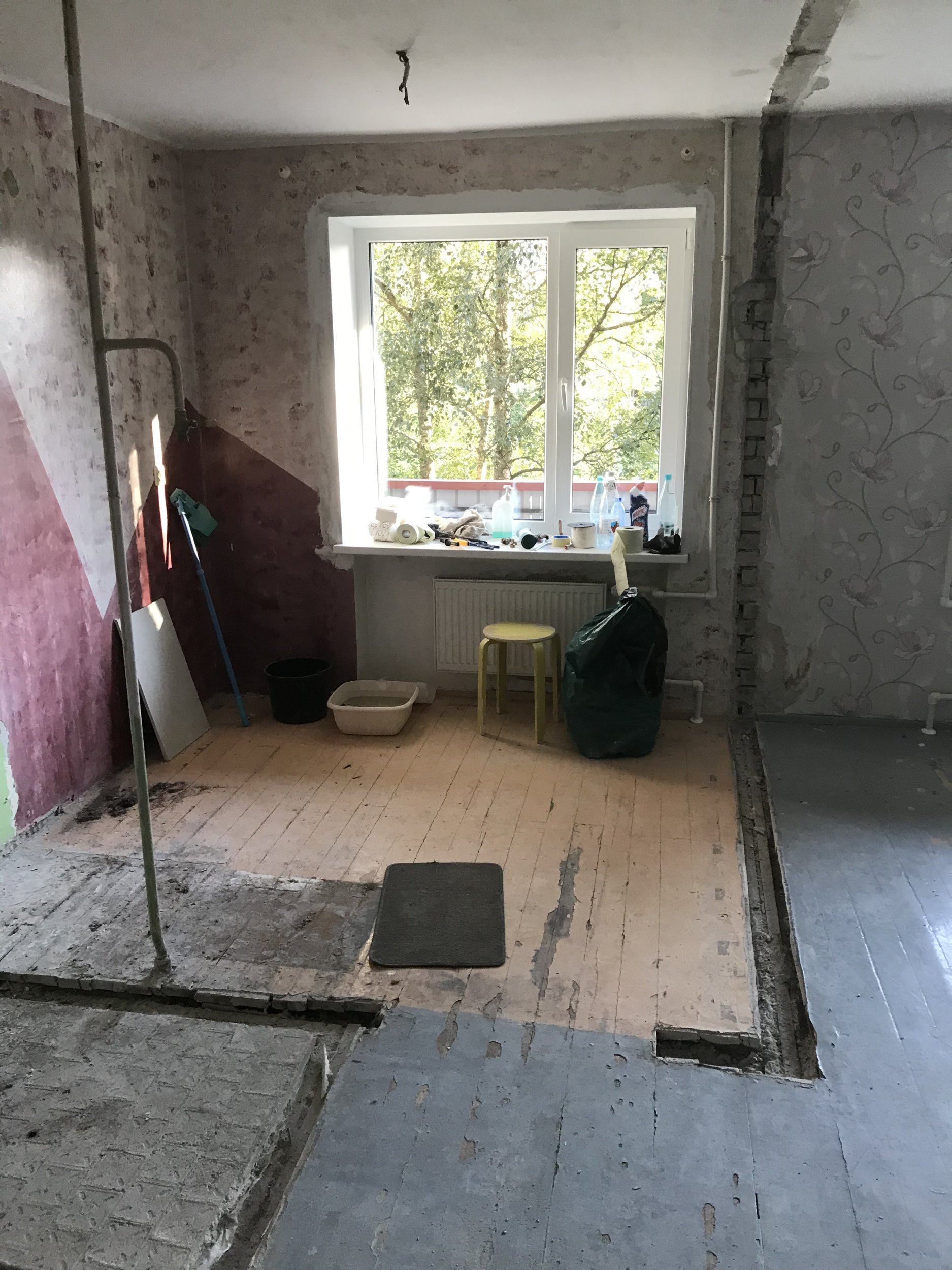 Vana tapeedi eemaldamine, eemaldatud vaheseinte otste kohal seina krohvimine, pahteldamine vastavalt vajadusele.