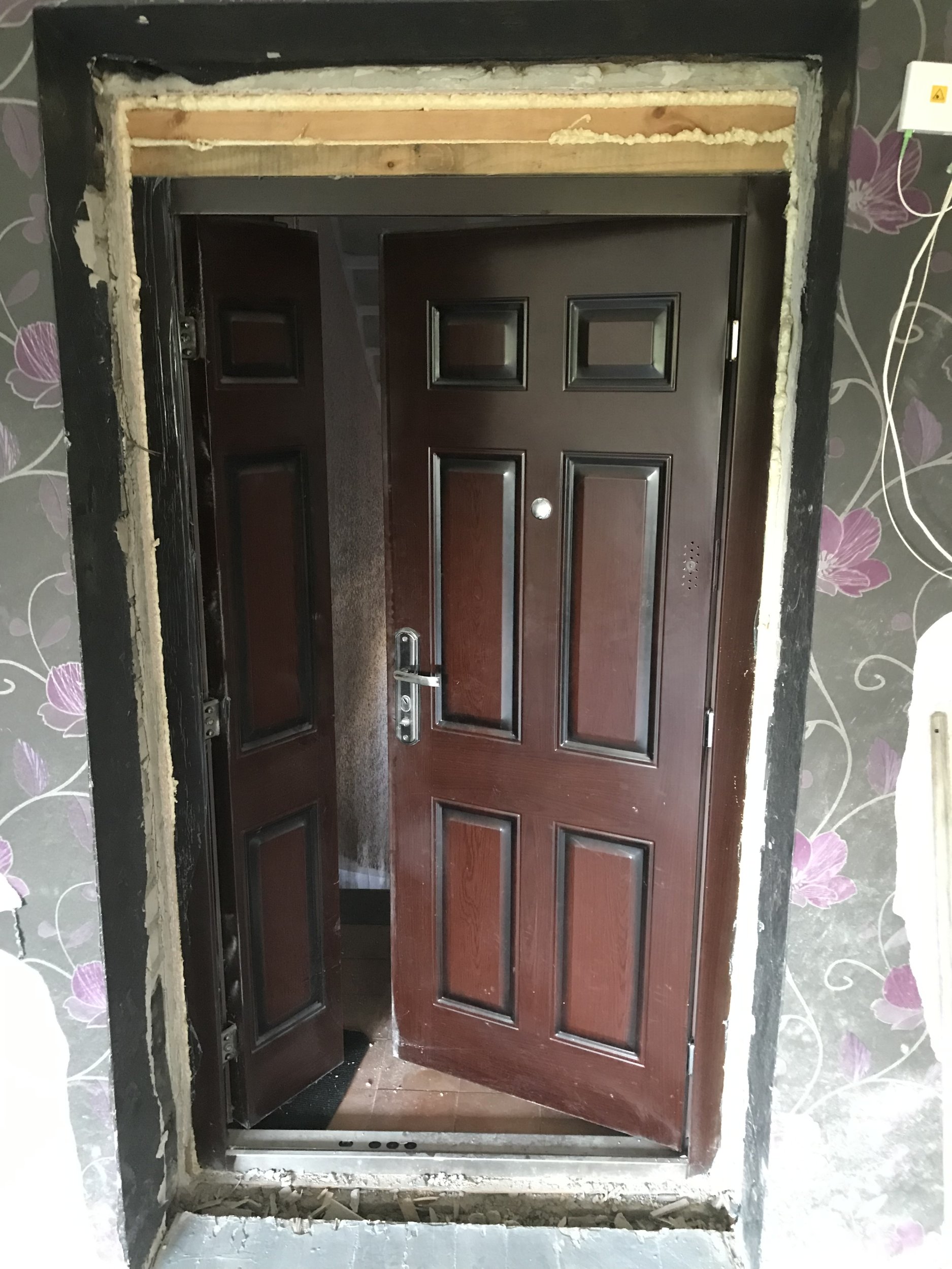 Sisemise välisukse paigaldamine. Ukseauk on 1150 x 2190 mm ja uks 10x21 dm, seega tuleb lengi jaoks teha karkass ja seinte pikendus.