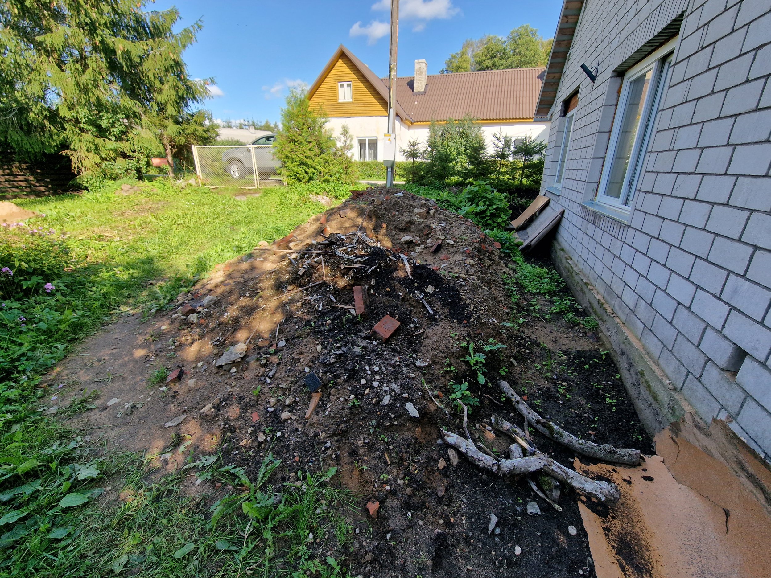 kivipuruga, tuhaga, ning sees on klaasitükke ja puidutükke. Kui palju maksaks kui võtaksite selle jäätmehunniku peale ja viiksite ära?