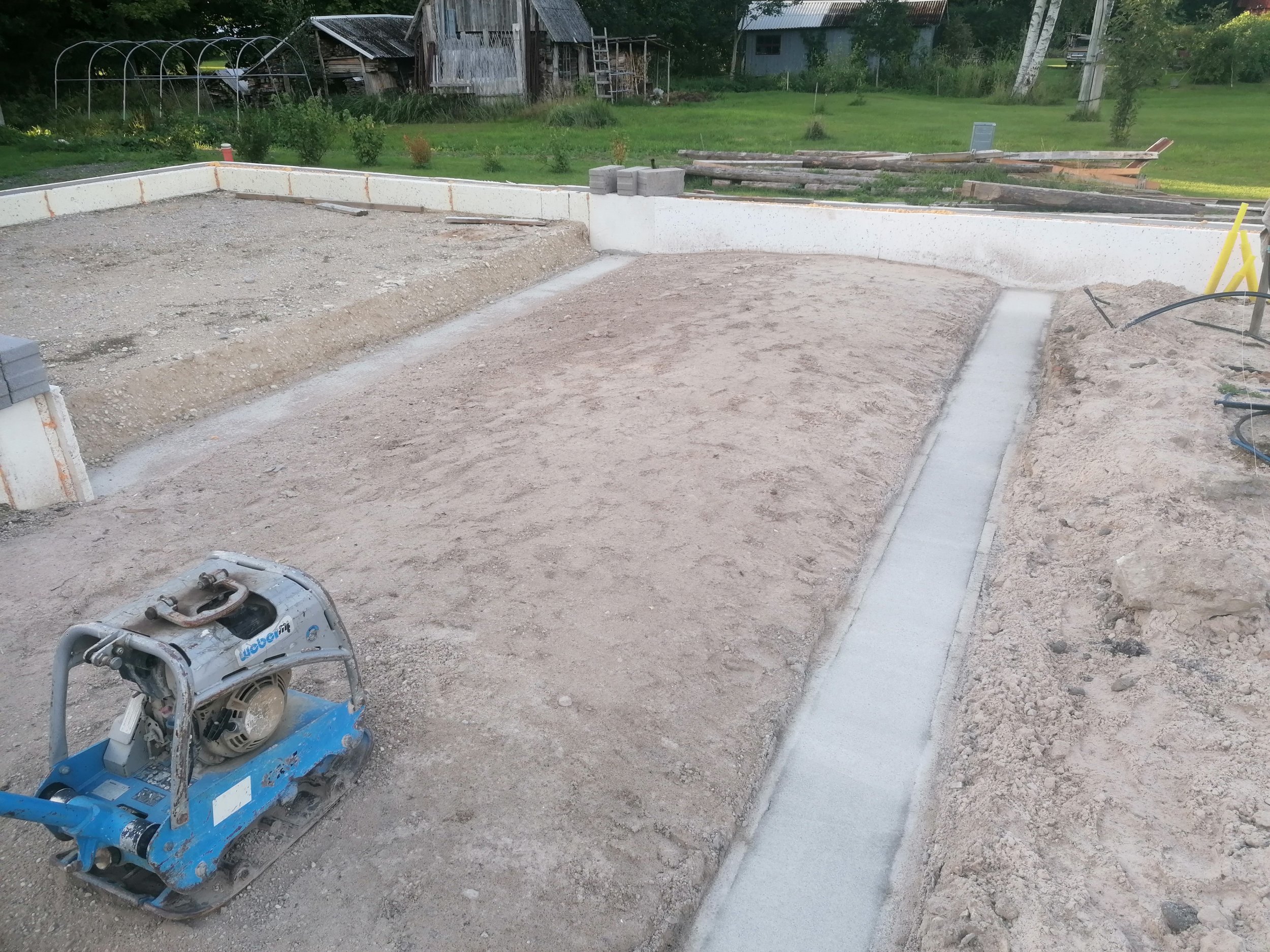 Kandvate seinade vundament tegemata( taldmik pandud), põranda valamine betoonika koos pinnase tasandamise, peno, armatuuri, kanali/veetoru, põrandaküte torude paigaldamisega ja betooneerimine.
