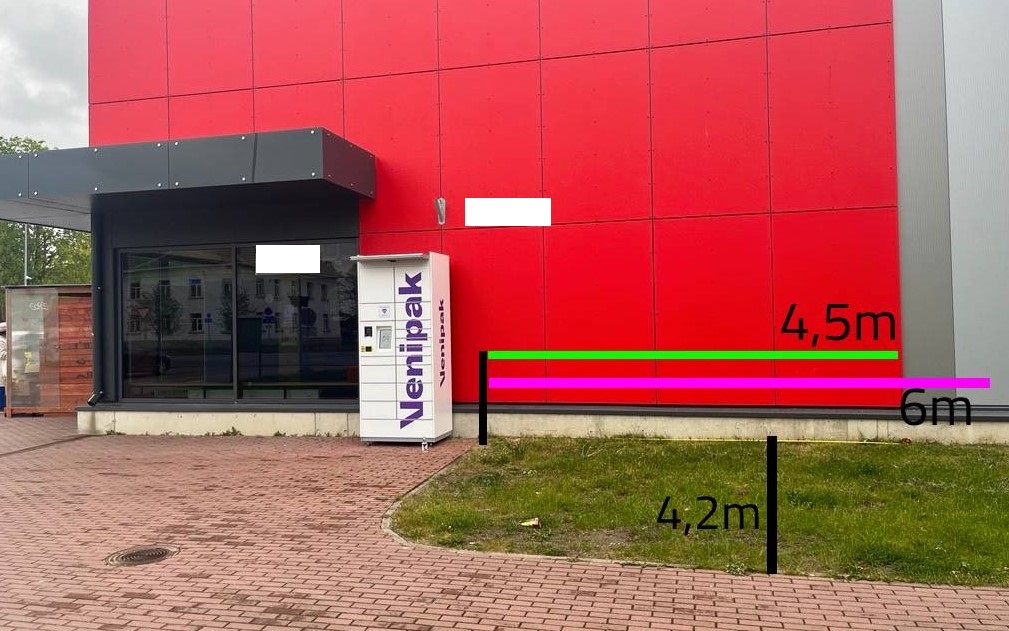 Esimene hinnapkkumine oleks platsile mõõtmetega 4,5x4,2 meetrit (joonisel rohelise joonega) ning samuti pakkumist platsile suurusega 6x4,2 meetrit (joonisel lilla joonega).