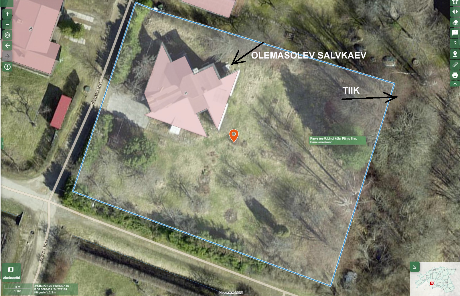 Maa-ameti kaardirakenduses katastri number: 15905:004:0698, suvila.